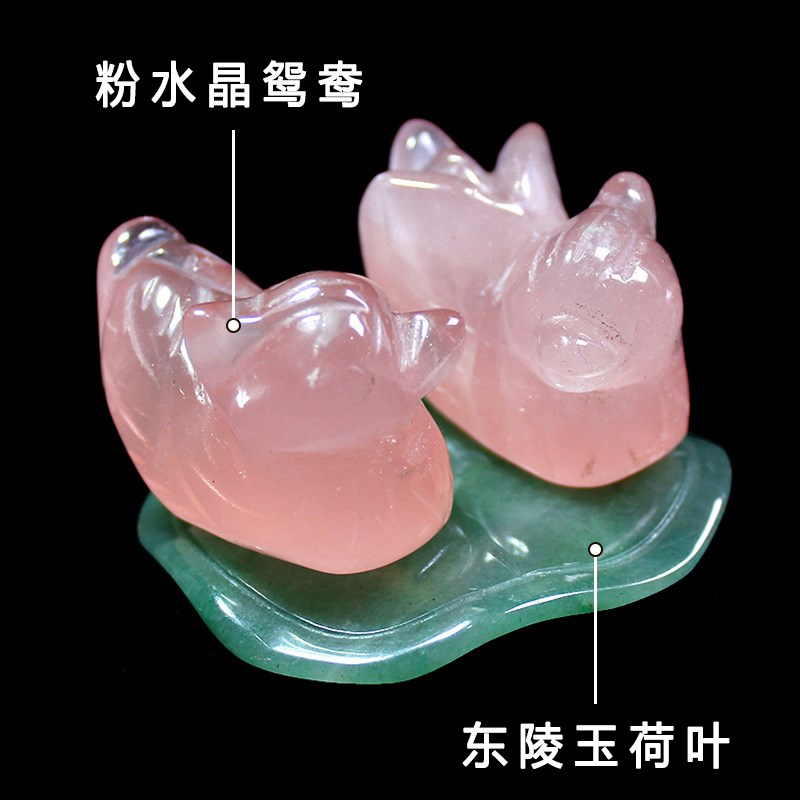 天然粉水晶鸳鸯摆件一对卧室夫妻装饰品床头柜恩爱粉晶和合高级小 - 秋饱德隆商城