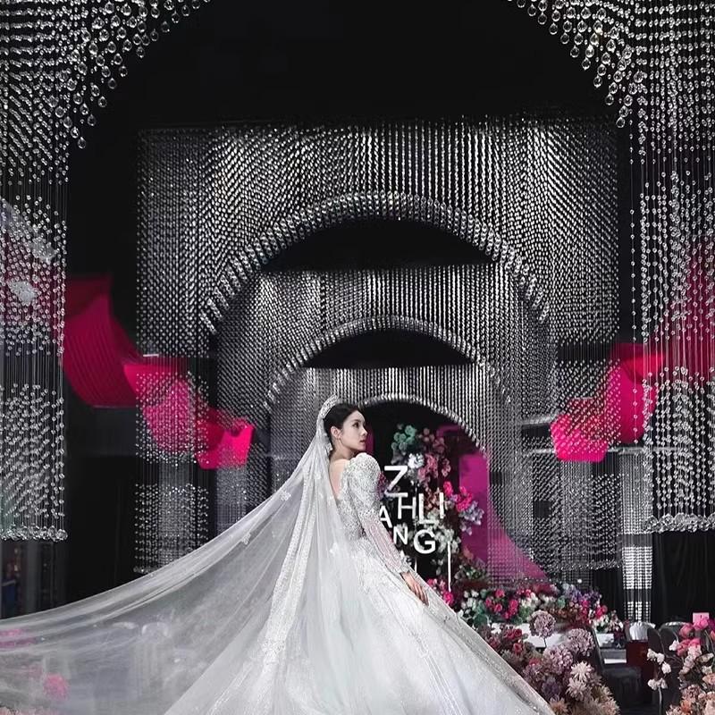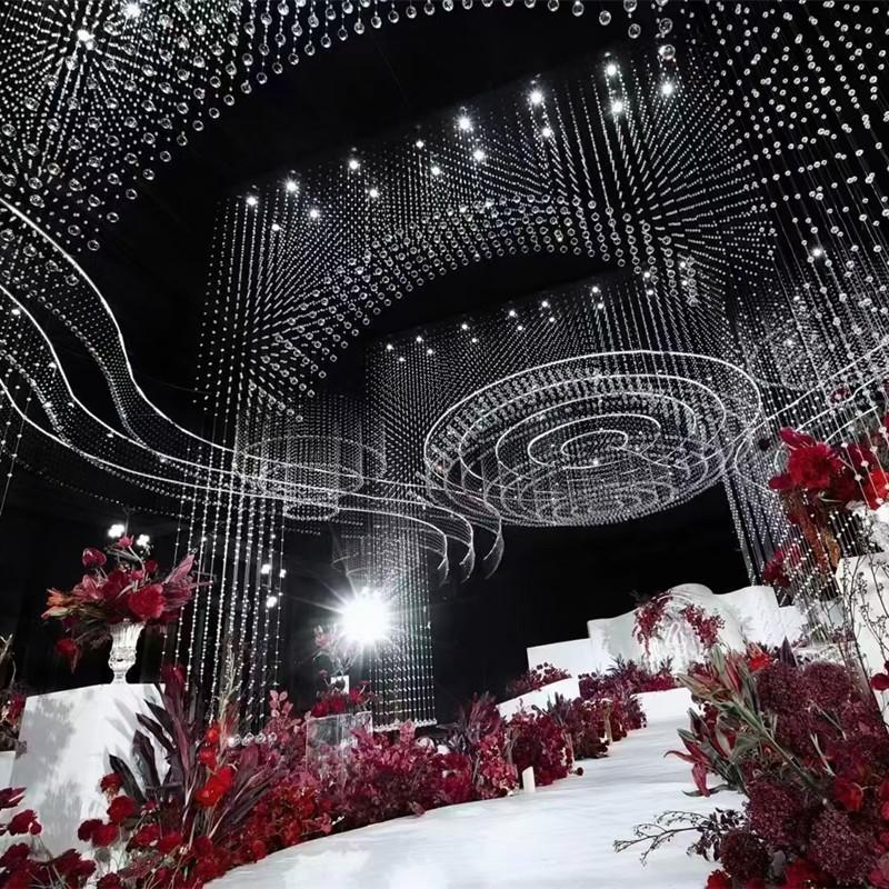 婚礼堂水晶厅拱门定制铁艺架子婚庆道具定位珠舞台吊顶花门架轨道