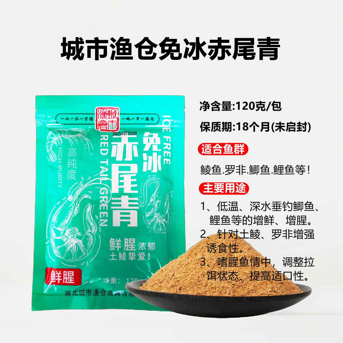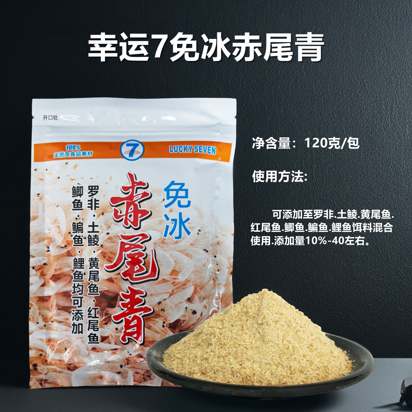 幸运七免冰赤尾青鲜腥南极虾粉野钓土鲮鱼罗非饵料肝粉免冻赤尾青