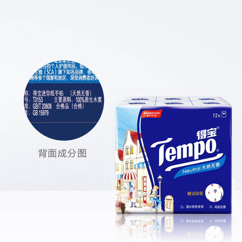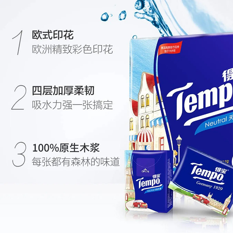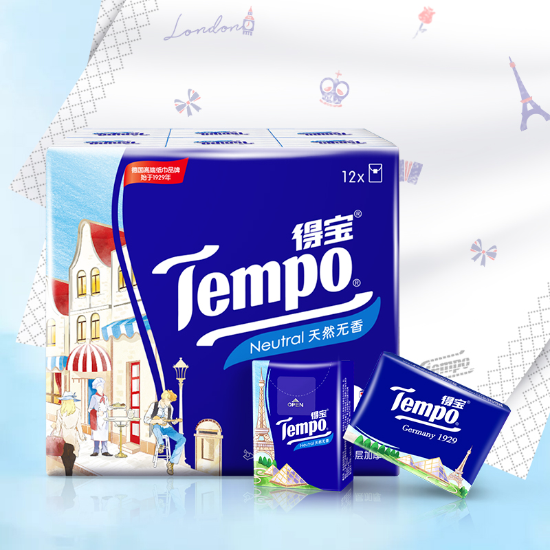 Tempo得宝手帕纸欧洲印花纸巾便携餐巾纸小包随身装面巾纸抽德宝 - 乔敲敲瞧纸品