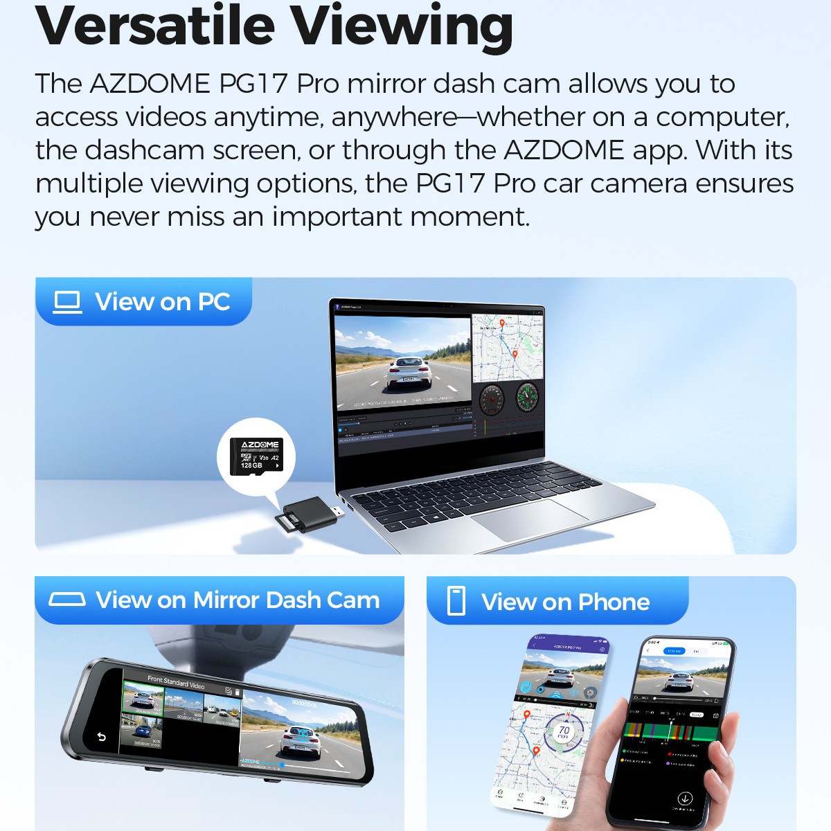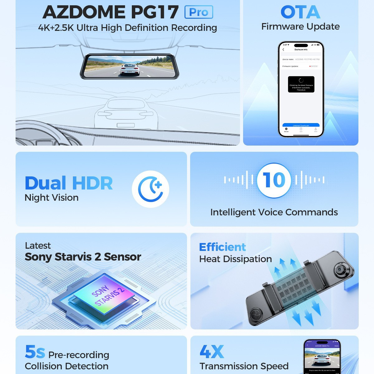 AZDOME 4K Rearview DashCam Touch Screen Mirror ADAS WiFi GPS - YSG优速购数码配件