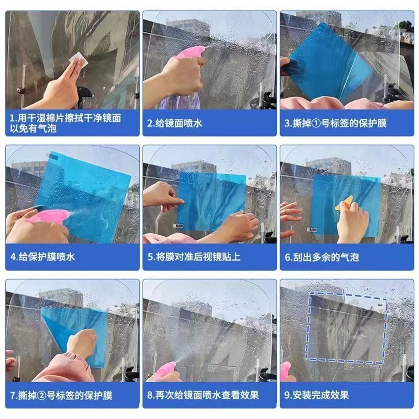 摩托车电动车挡风玻璃板防雨贴防雾膜防眩目雨棚电瓶车防雨雾贴膜 - 艾优优品