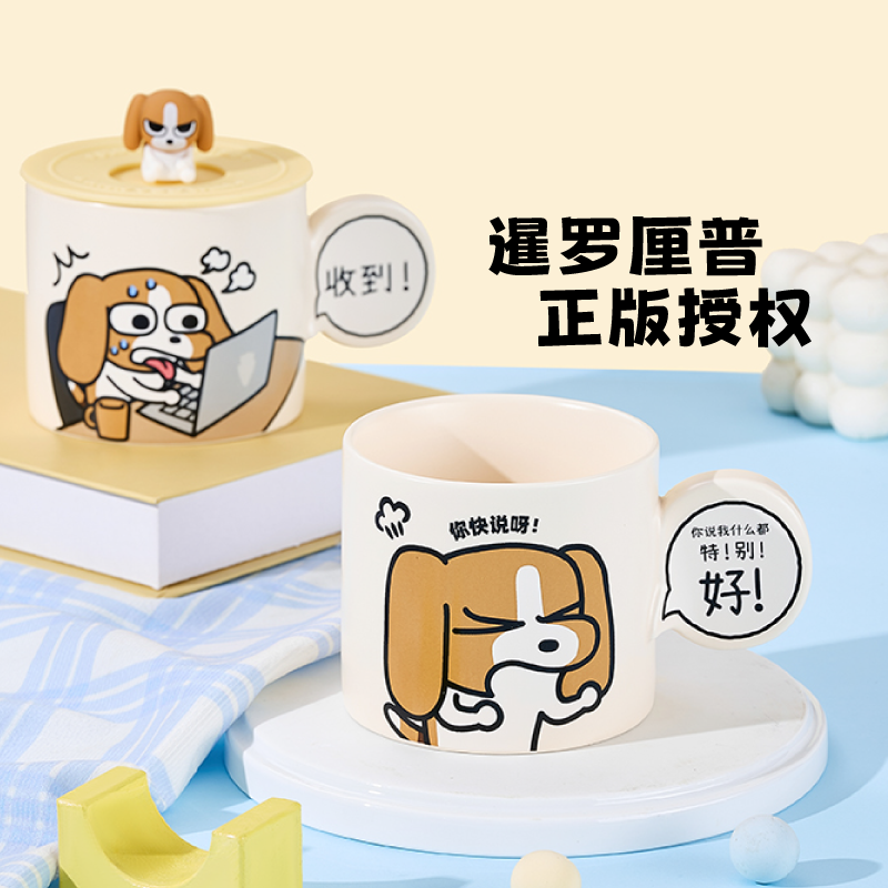 言仓暹罗厘普对话框马克杯家用办公室创意喝水牛奶杯带盖陶瓷杯 - 言仓餐饮具旗舰店