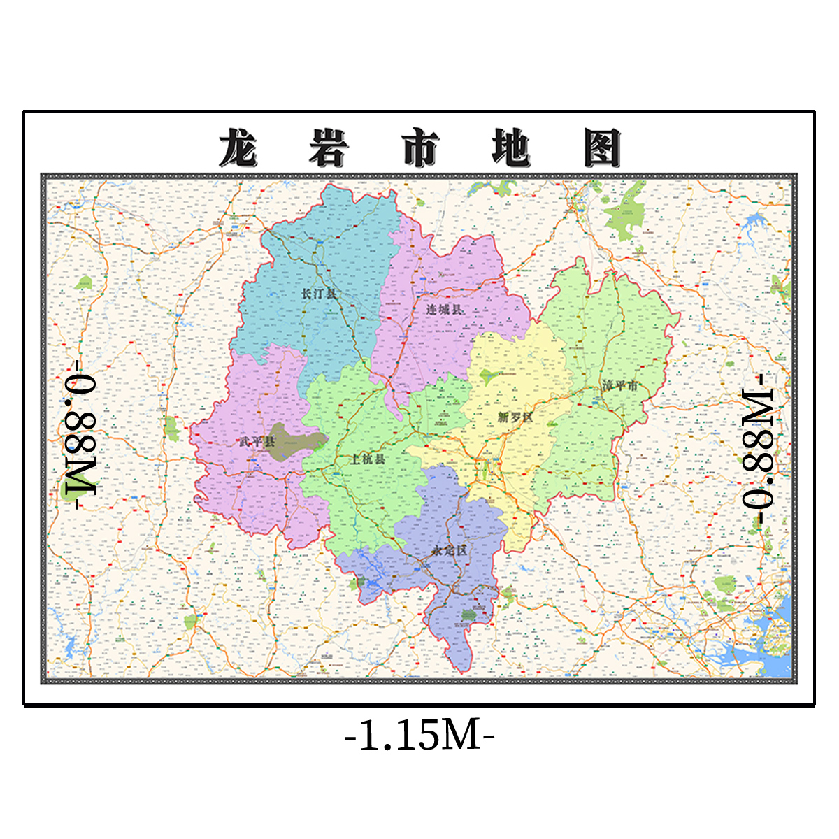 龙岩市地图1.15m办公室书房装饰画区域划分高清打印折叠两用墙贴 - 捷商家居企业店