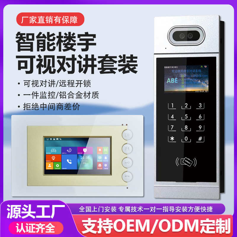 数字人脸识别可视楼宇小区单元对讲门禁系统门铃电子防盗门锁套装