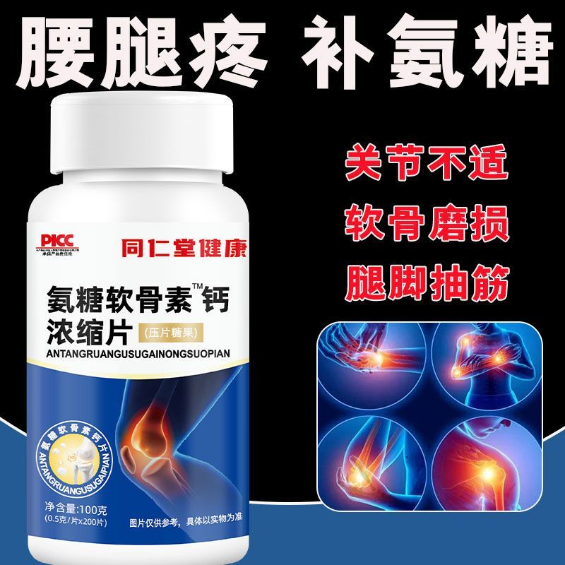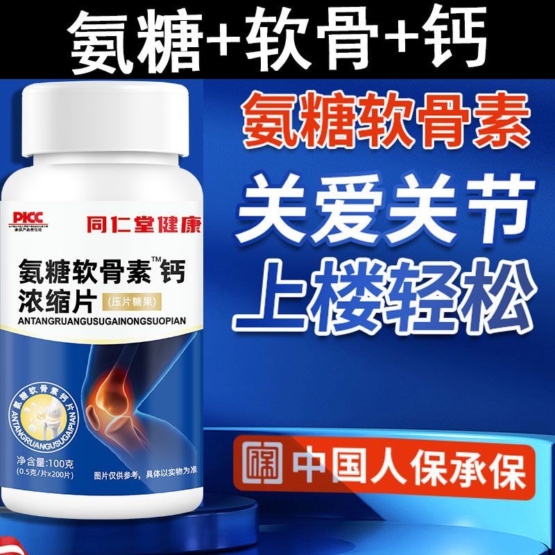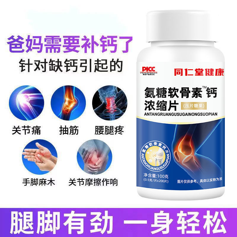 同仁堂健康氨糖软骨素钙片维生素d中老年人腰腿疼痛麻木抽筋缺钙 - 三彩食品