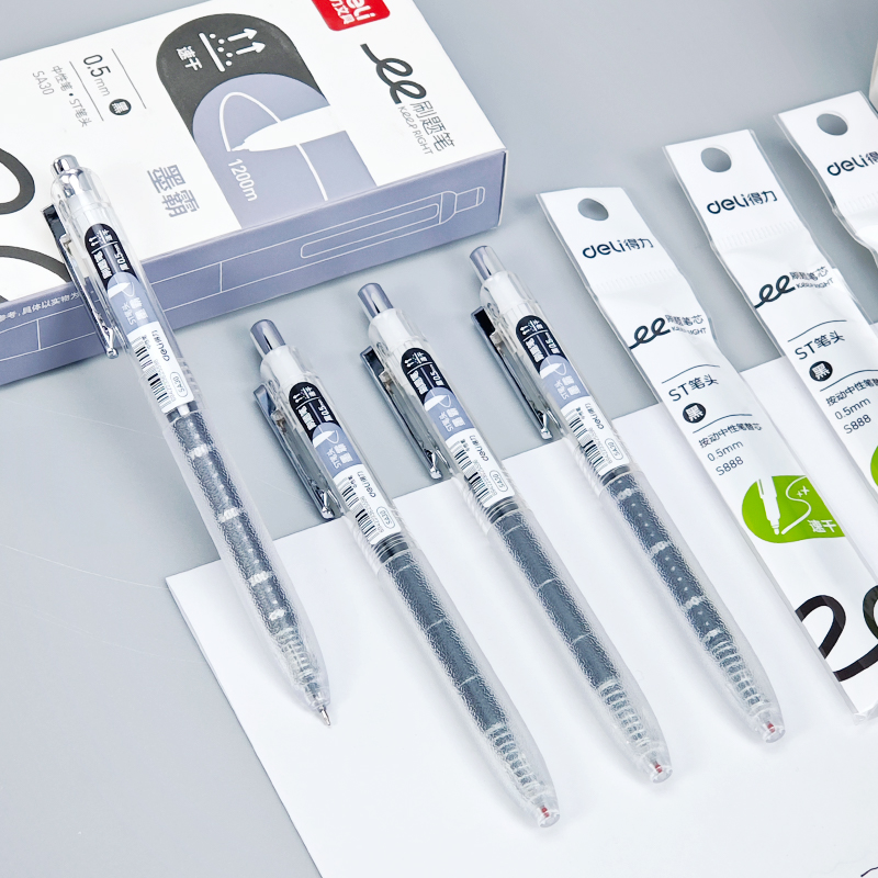 您的位置:他他商城  >   >  得力SA30速干按动中性笔0.5墨霸大容量学生考试顺滑黑色水笔ST头