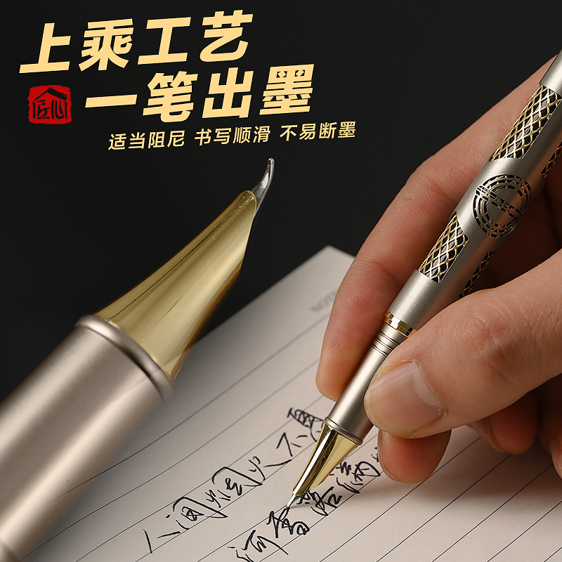 永生9562镂空网格美工钢笔成人学生书法练字办公签名专用金属钢笔 - 蓓牛文化用品店