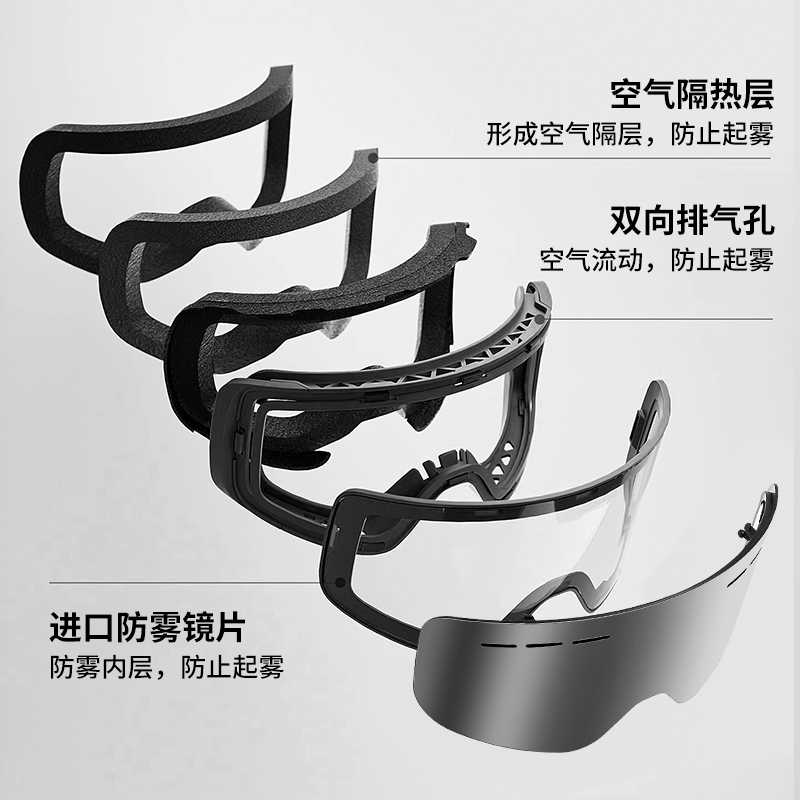 防雾滑雪专用墨镜方圆脸适合防紫外线防风防沙防眩光护目镜大柱面 - 凯乐迪眼镜旗舰店