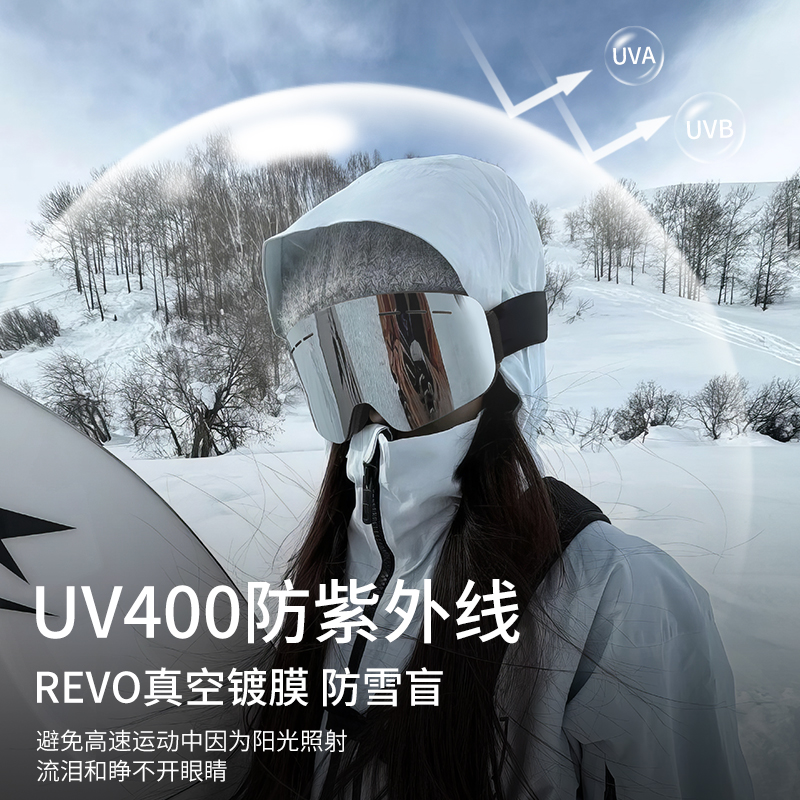 防雾滑雪专用墨镜方圆脸适合防紫外线防风防沙防眩光护目镜大柱面