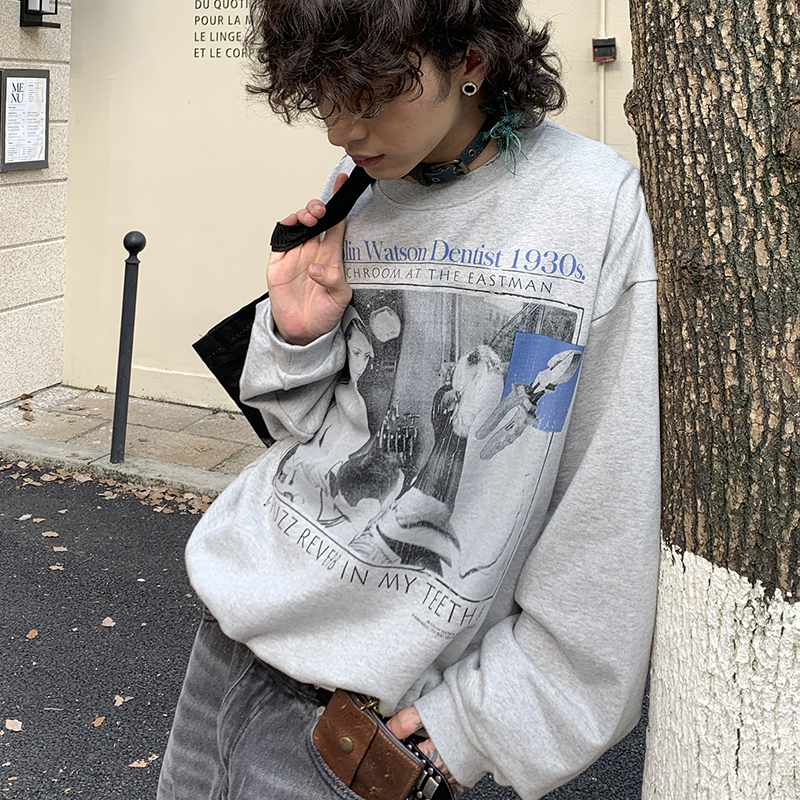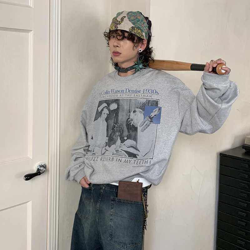 POH 24AW 德国60S牙医诊所胶片405g印花boxy长袖圆领打底卫衣