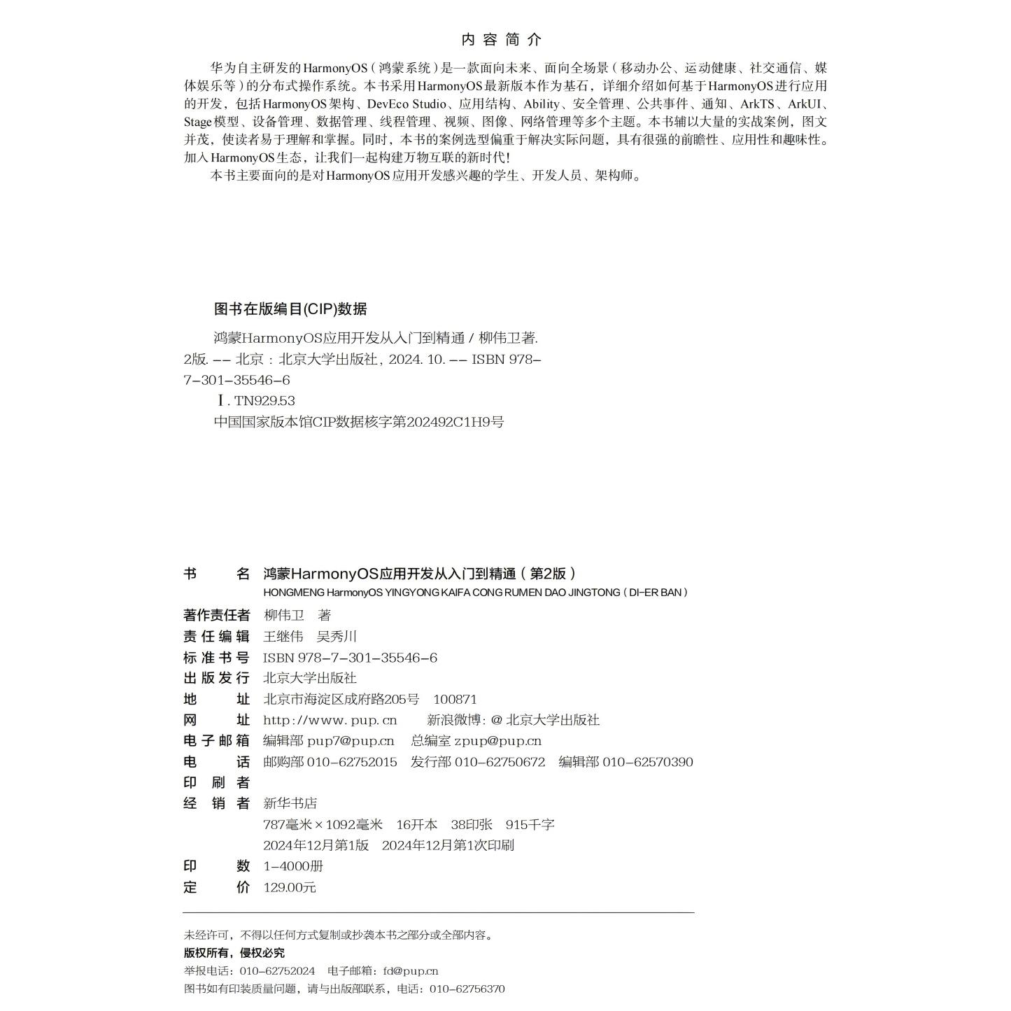 鸿蒙HarmonyOS应用开发从入门到精通 第2版 柳伟卫  北京大学出版社 9787301355466