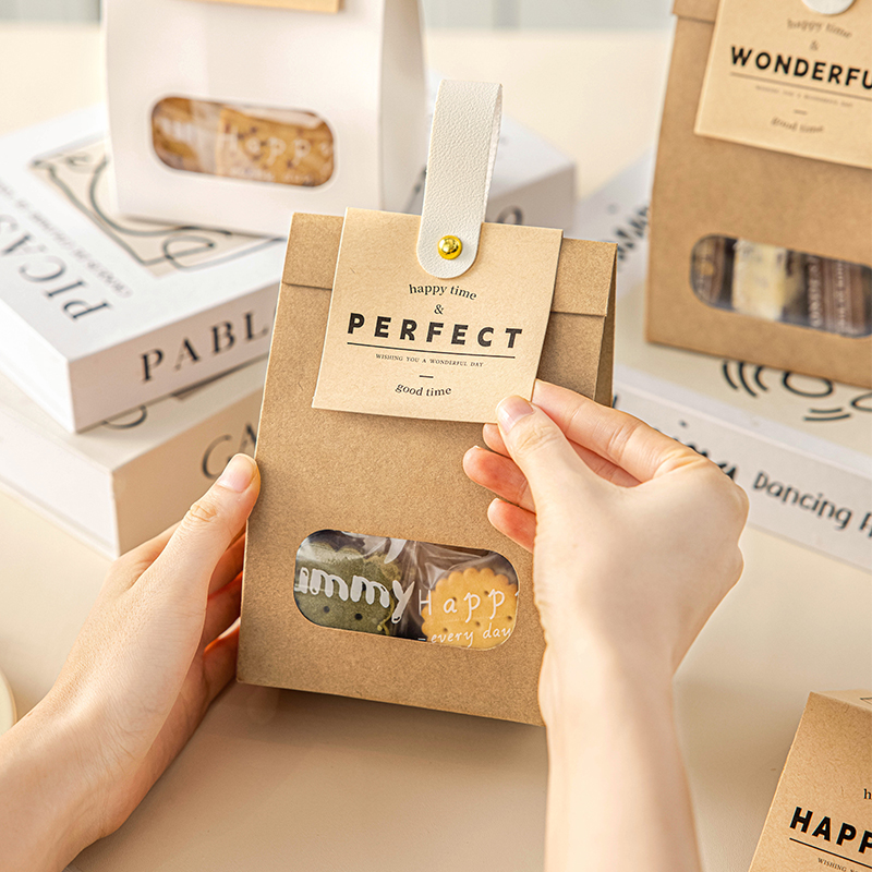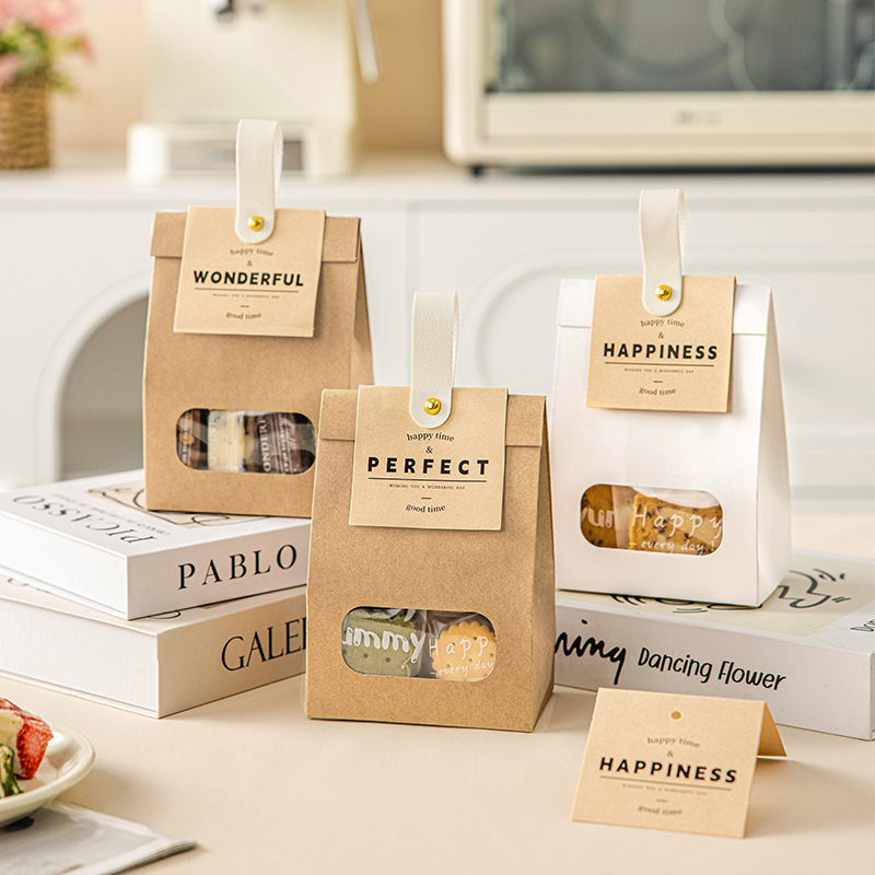 饼干包装袋雪花酥太妃糖果曲奇牛皮纸手提烘焙点心送人礼品自立封 - 盒记食品专营店
