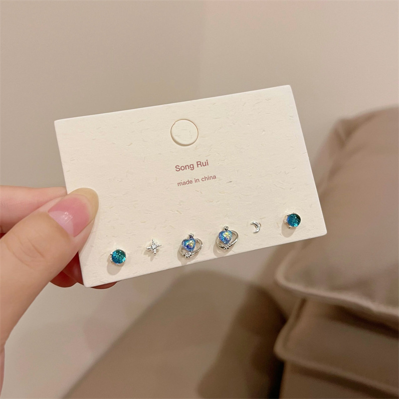 您的位置:他他商城  >  配饰  >  925银针简约星空蓝气质耳钉套装组合小众设计感甜美少女心耳饰女