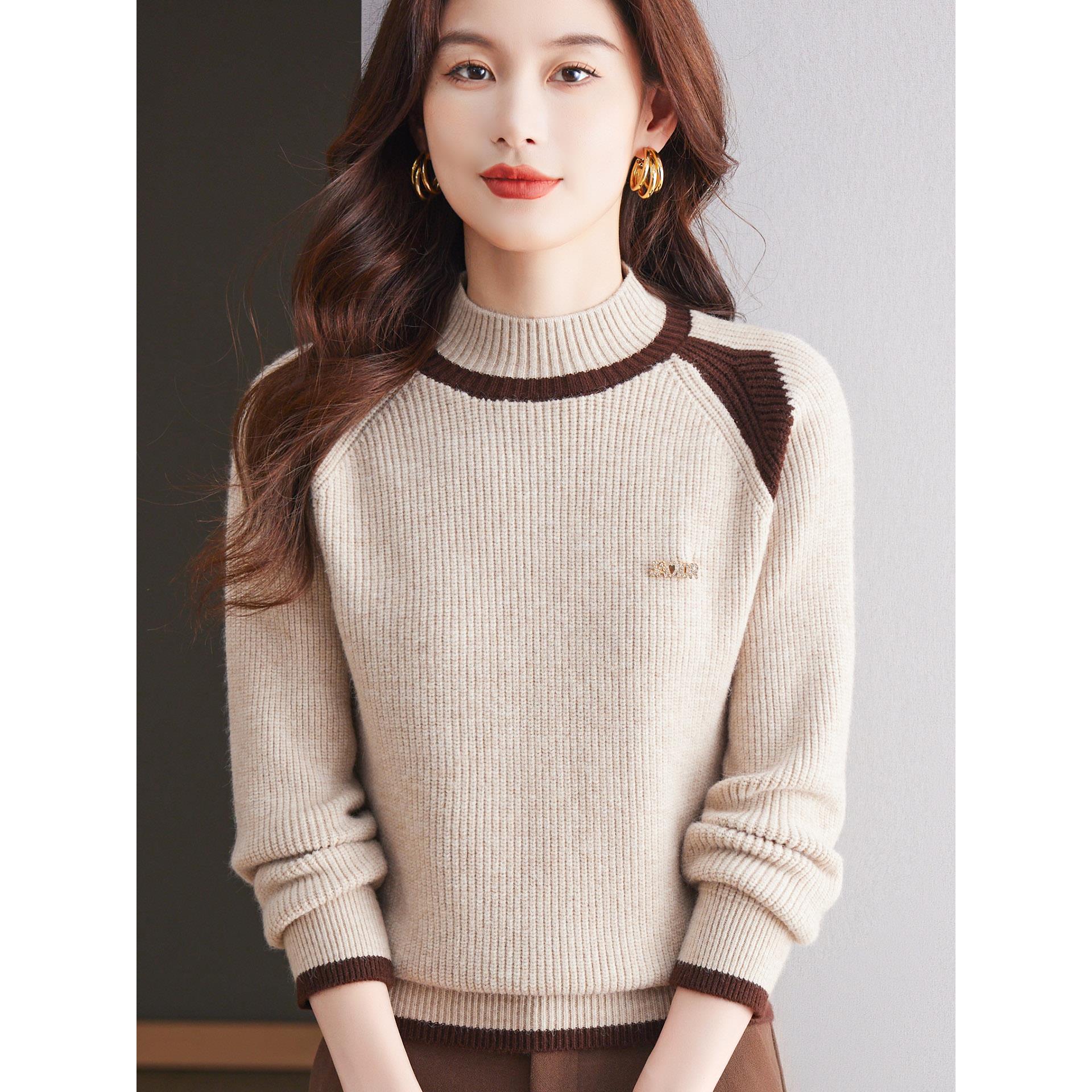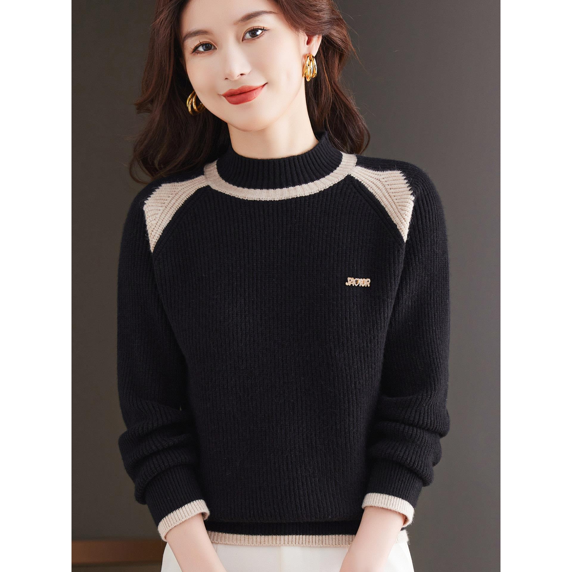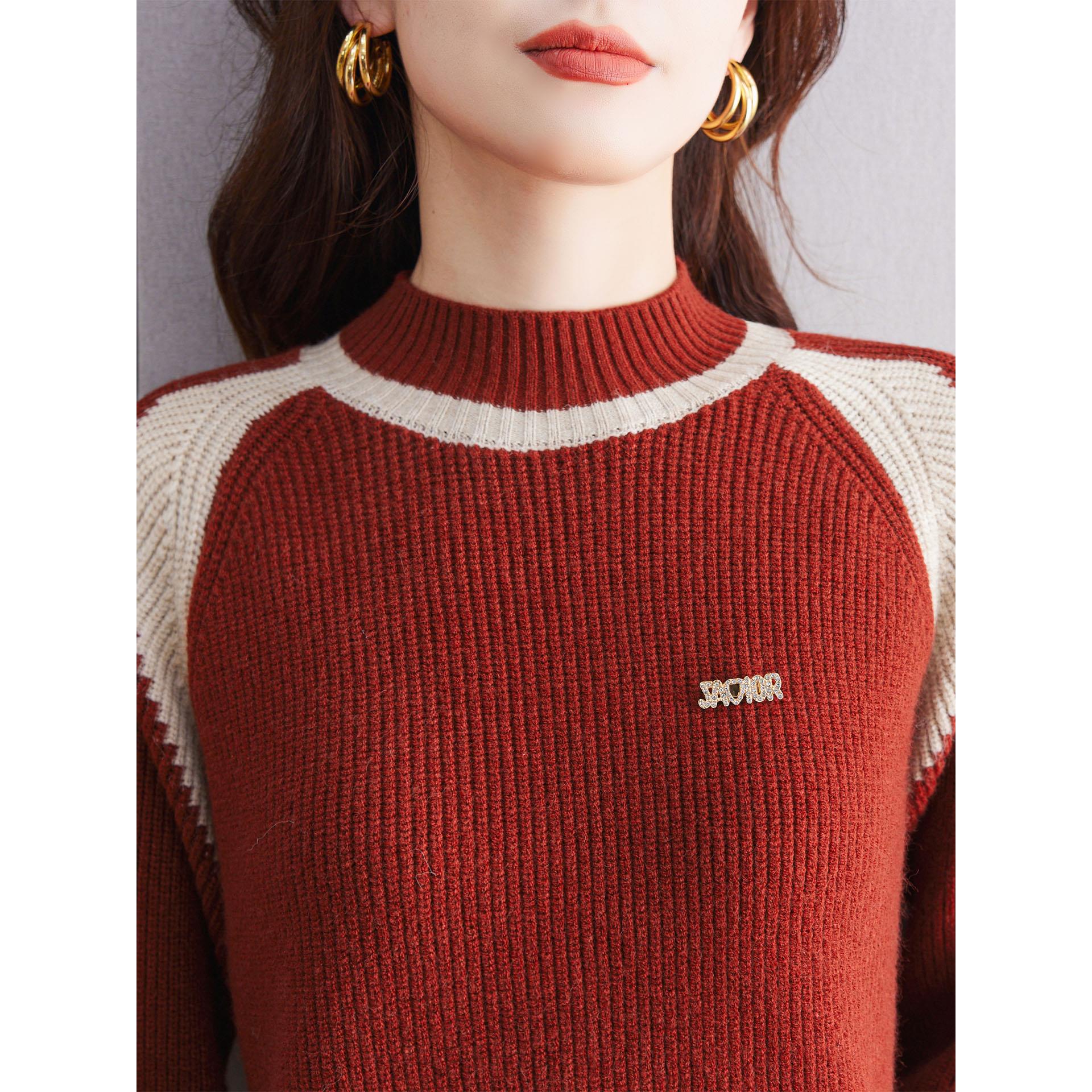 JOYIASS2025秋冬新款红色半高领衫女撞色拼接宽松洋气毛衣针织打 - 小新家每日上新