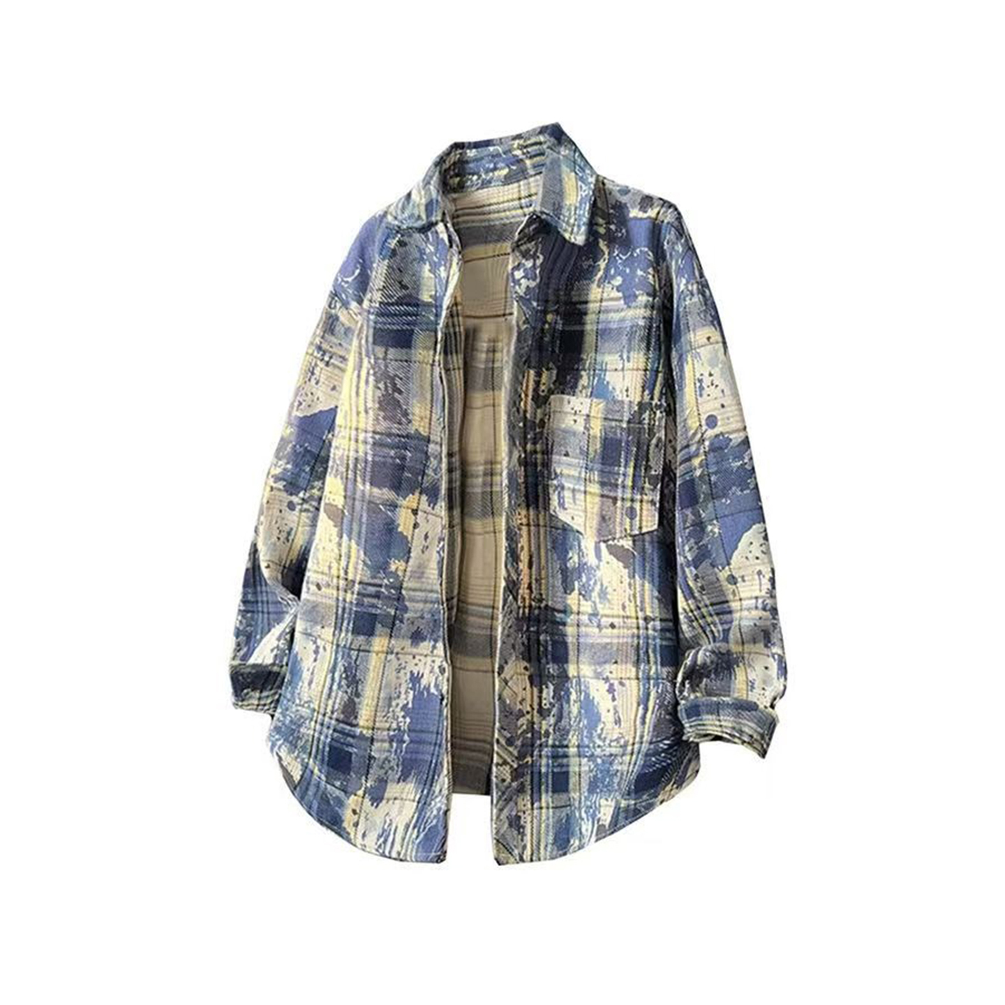 WH先生扎染格子衬衫夏季男款美式男女复古长袖衬衣情侣外搭上衣 - WH先生原创设计