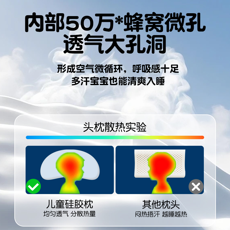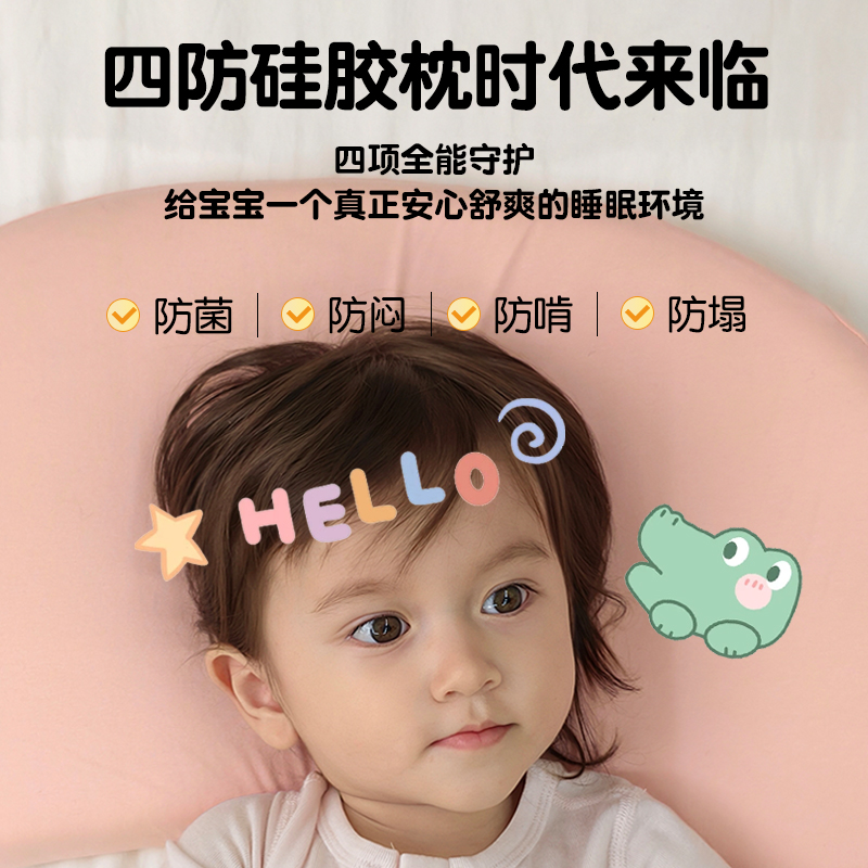婴儿硅胶枕头1-3到6岁6个月以上幼儿宝宝专用四季通用儿童可水洗 - 软酱酱旗舰店