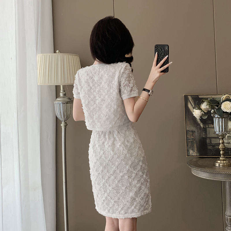 您的位置:他他商城  >   >  2025夏季新款时尚套装女设计感小众气质显瘦短袖上衣短裙两件套