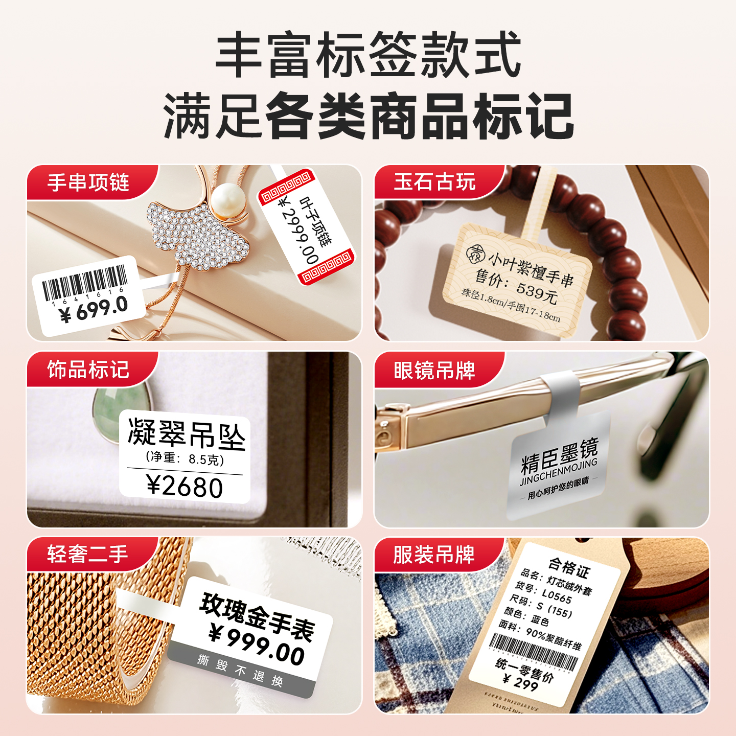 精臣B21珠宝标签打印机首饰吊牌条码价签打价格标签机商用小型手镯项链手表饰品玉石翡翠黄金眼镜店打印机 - 精臣旗舰店