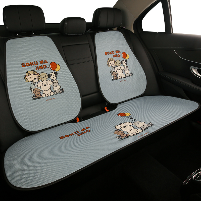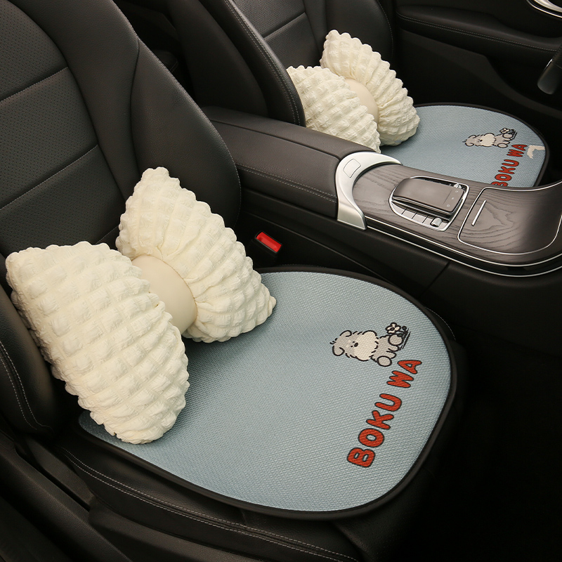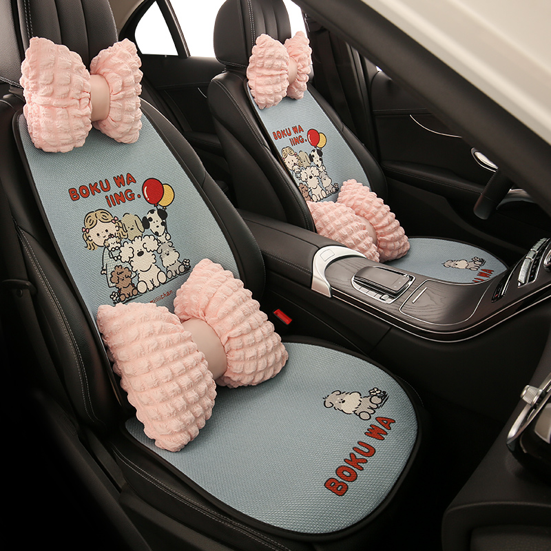 可爱女生卡通汽车坐垫四季棉麻透气座椅套半包小轿车SUV通用座垫
