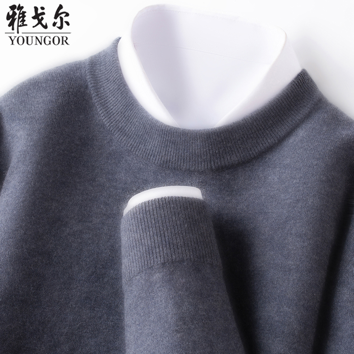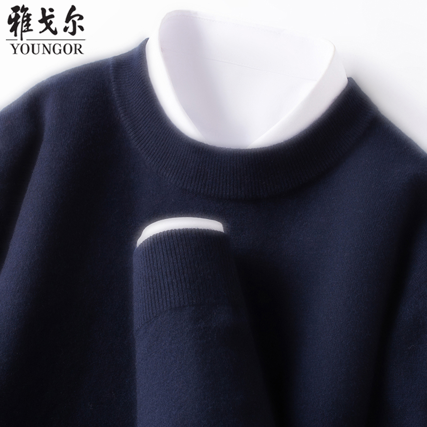雅戈尔100%羊绒衫2025秋冬新款圆领纯色休闲针织毛衣羊毛打底衫男 - 奥莱撤柜甄选