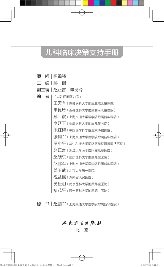 正版现货 儿科临床决策支持手册孙锟体格检查辅助检查治疗原则专科转诊指征,诊疗流程图分析思路临床指导指南书籍人民卫生出版社