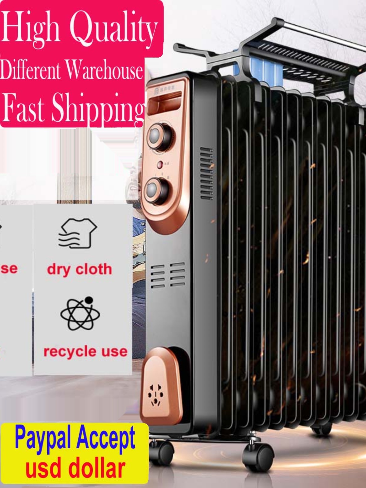 electric space heater oil heat radiator winter取暖器油汀黑色 - 百年好合一店