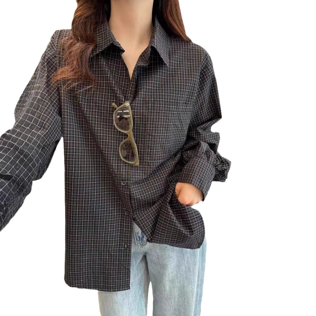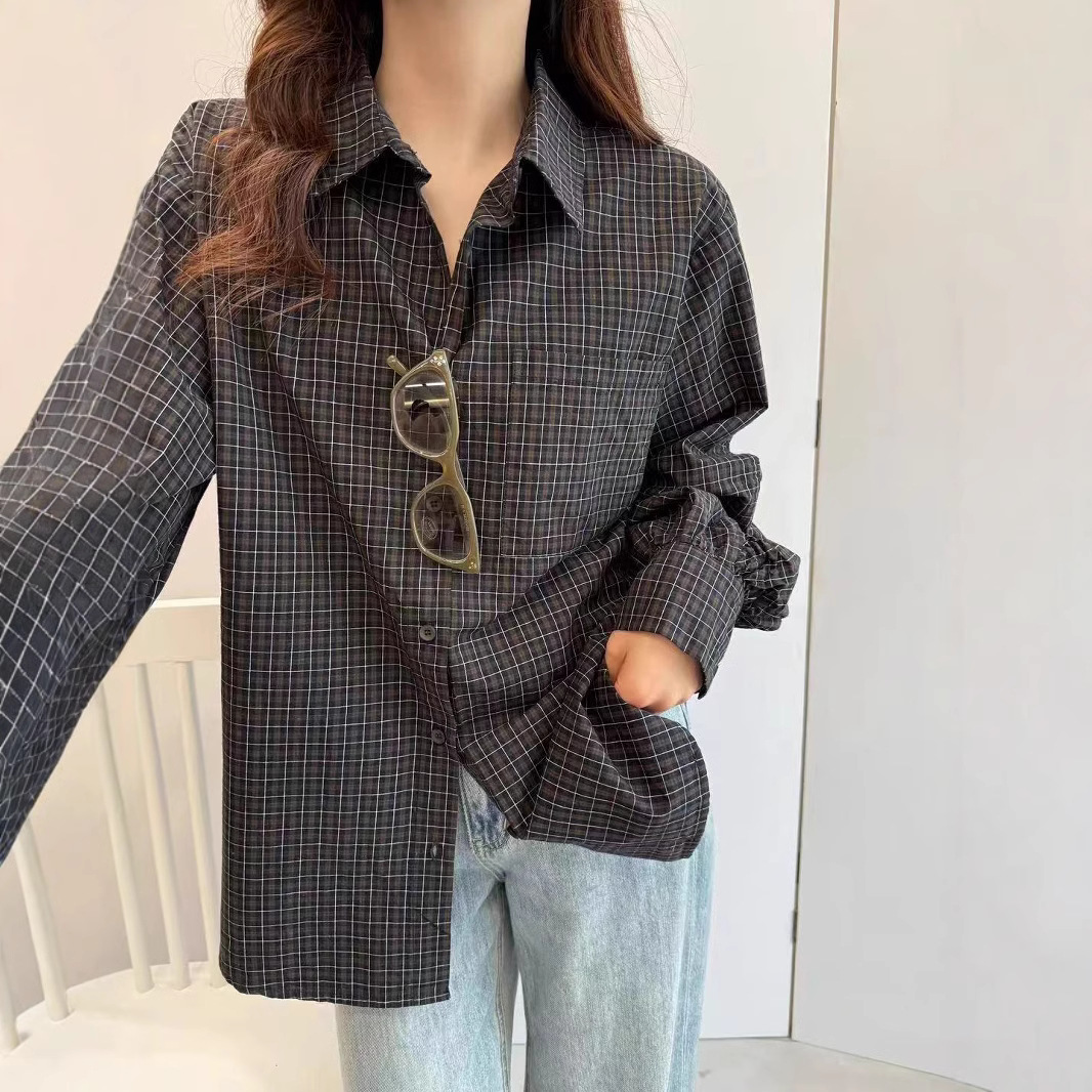 您的位置:他他商城  >   >  2025新款衬衫女春日氛围感穿搭翻领韩版格子衬衫宽松叠穿慵懒衬衫