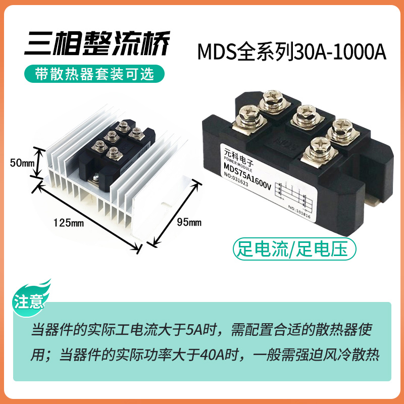 MDS100akbpc1600三相整流桥模块50A整流器发电机转直流增程器200A - 杭州元科电子专业模块