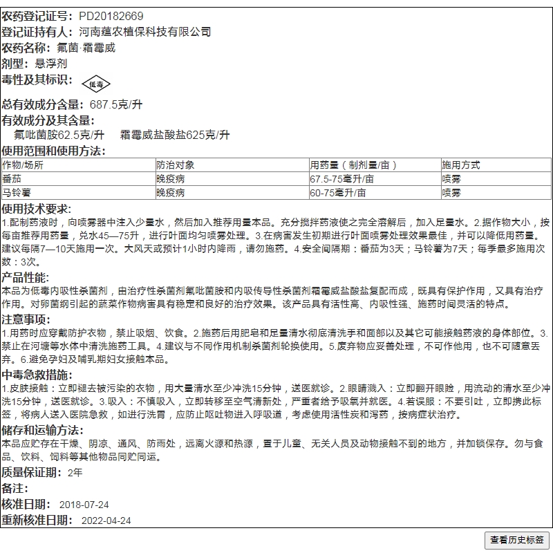 氟菌霜霉威氟吡菌胺番茄马铃薯晚疫病保护治疗卫农娜森农药杀菌剂