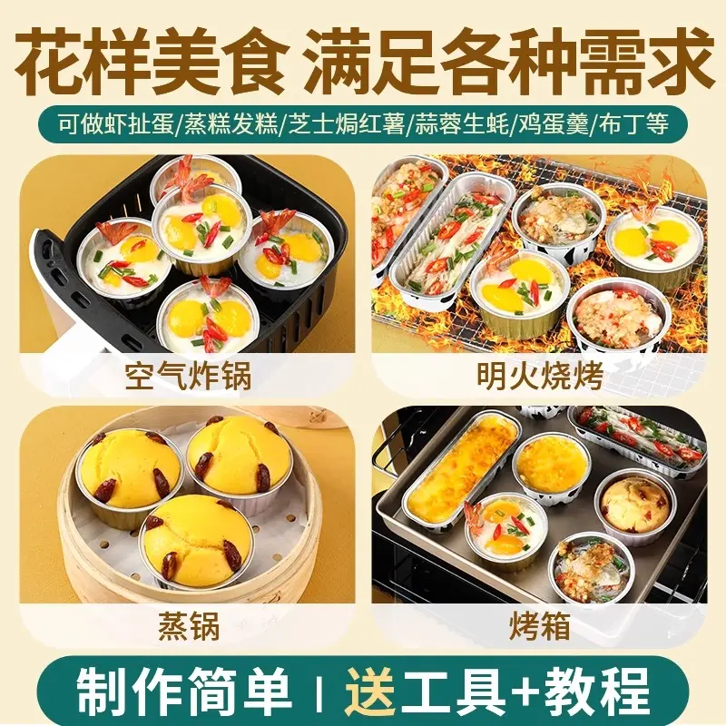 加厚【50只】空气炸锅锡纸碗铝箔可重复使用家用烤箱蛋糕烘焙模具 - 第25时优选店