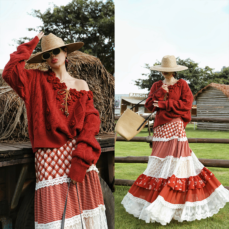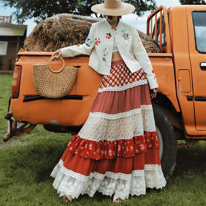 麦叙原创《甜野来信》法式田园风蕾丝格子印花拼接蛋糕裙女半身裙 - 麦叙女装 原创设计师品牌