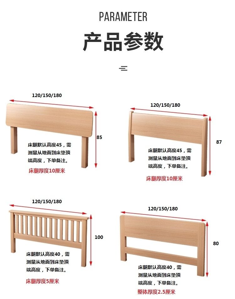 实木榉木床头板1.5新款靠背板1.8米简约现代榻榻米双人床头单买 - 森博家具