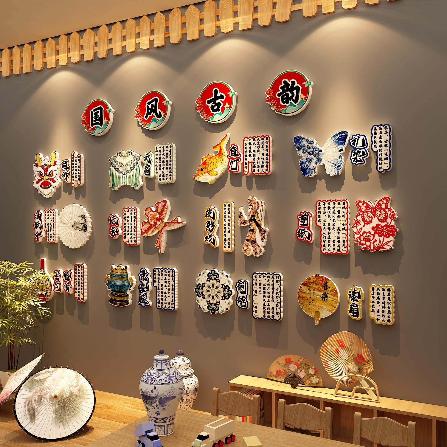 您的位置:他他商城  >   >  幼儿园非遗场景布置传统文化墙面装饰教室环创主题半成品材料走廊