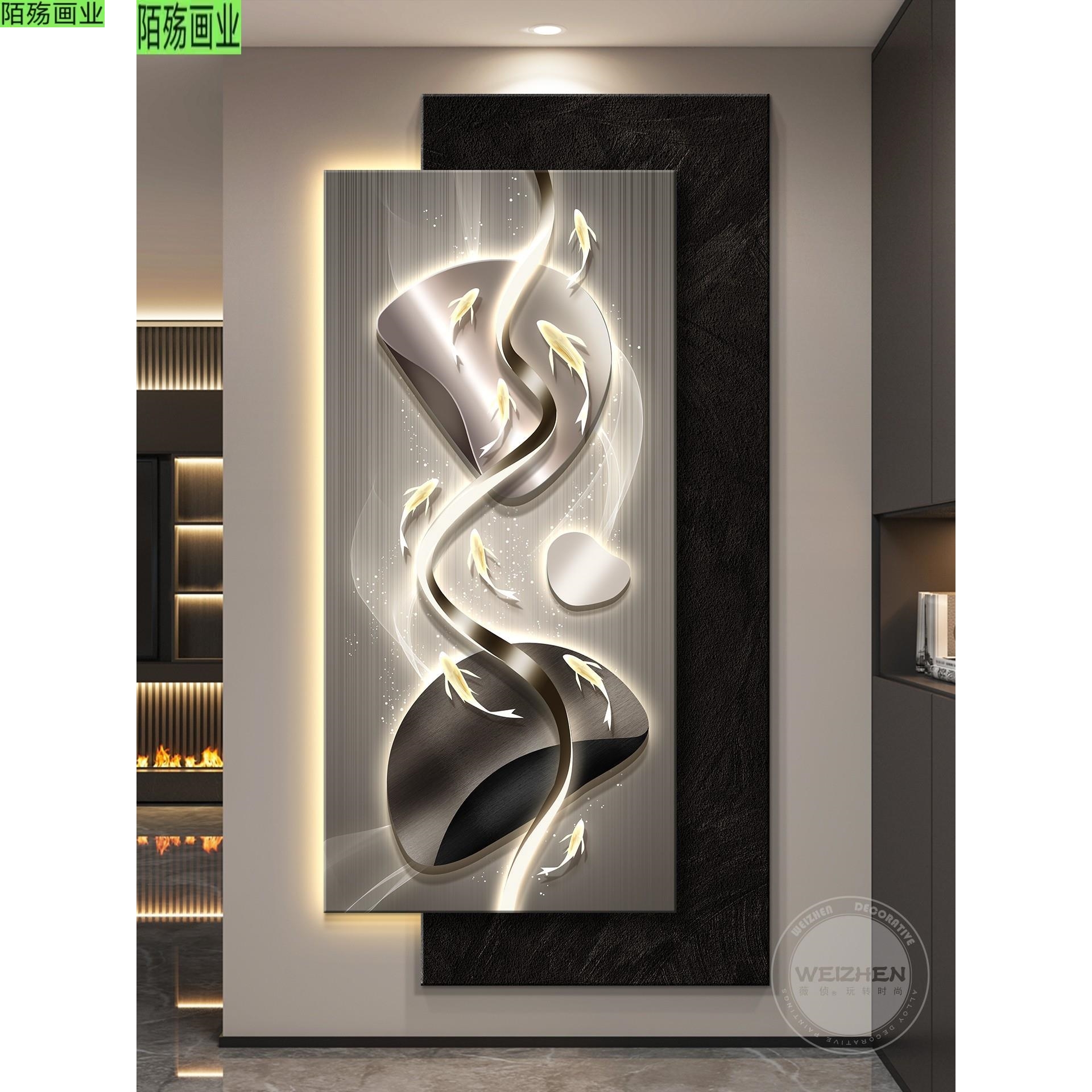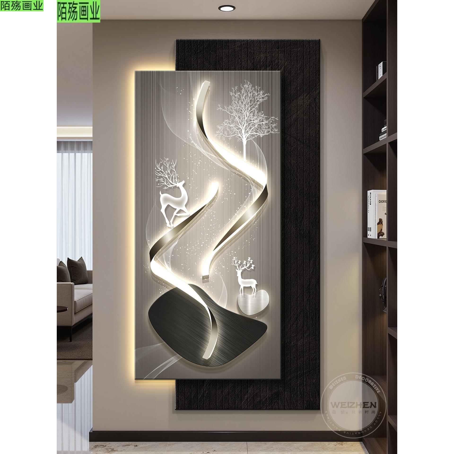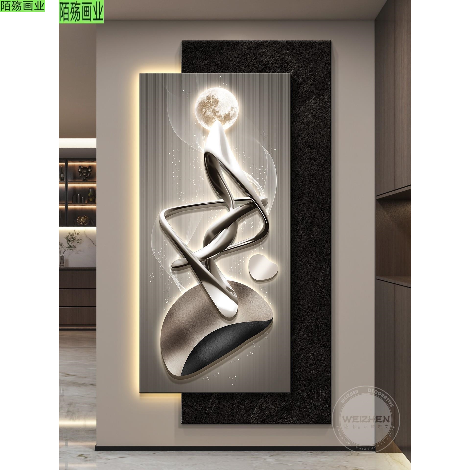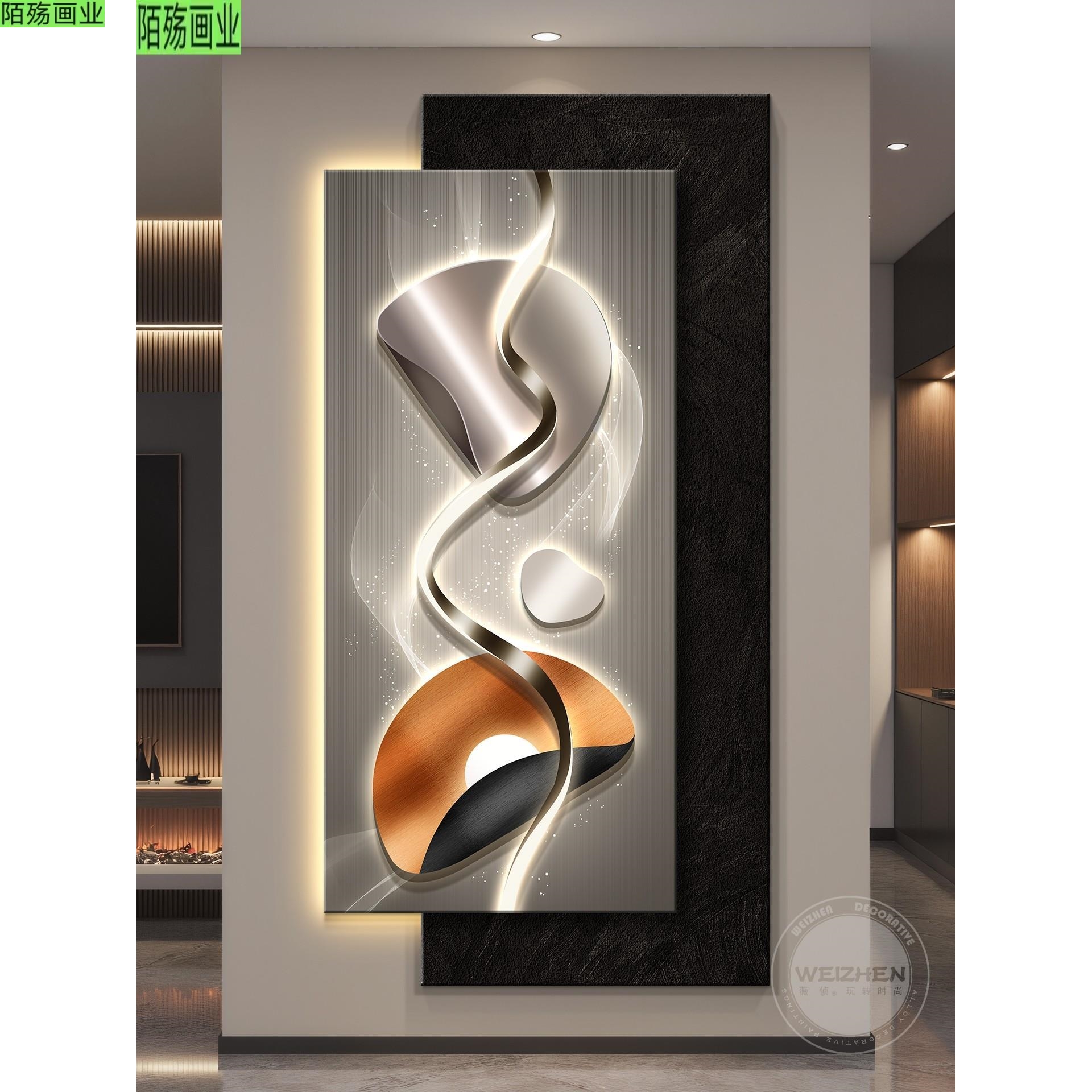 led带灯轻奢入户玄关装饰画走廊过道挂画壁画高级感简约现代抽象 - 陌殇艺术画业
