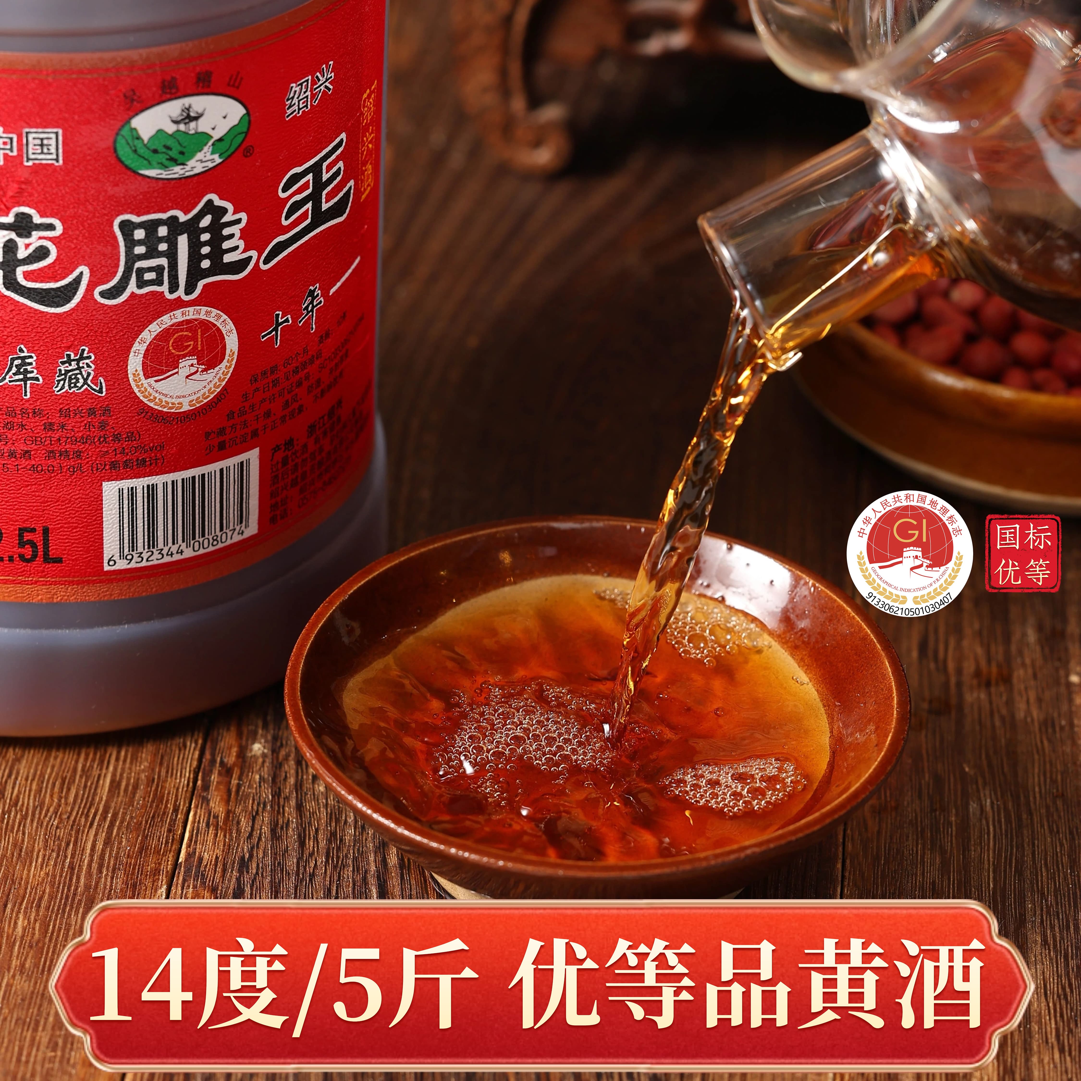 吴越稽山花雕王14度绍兴黄酒自饮五斤桶装糯米老酒加饭酒 优等 - 吴越稽山旗舰店