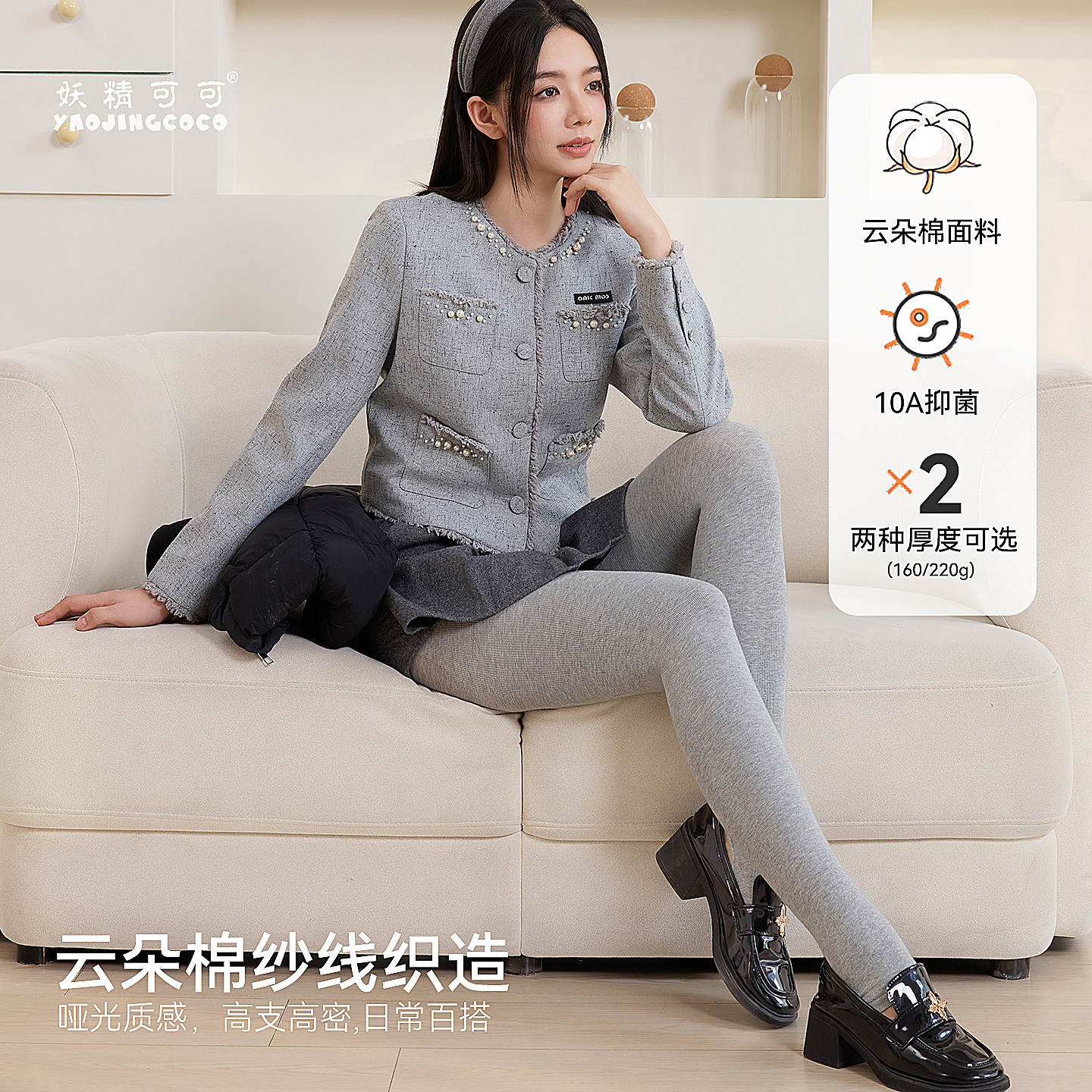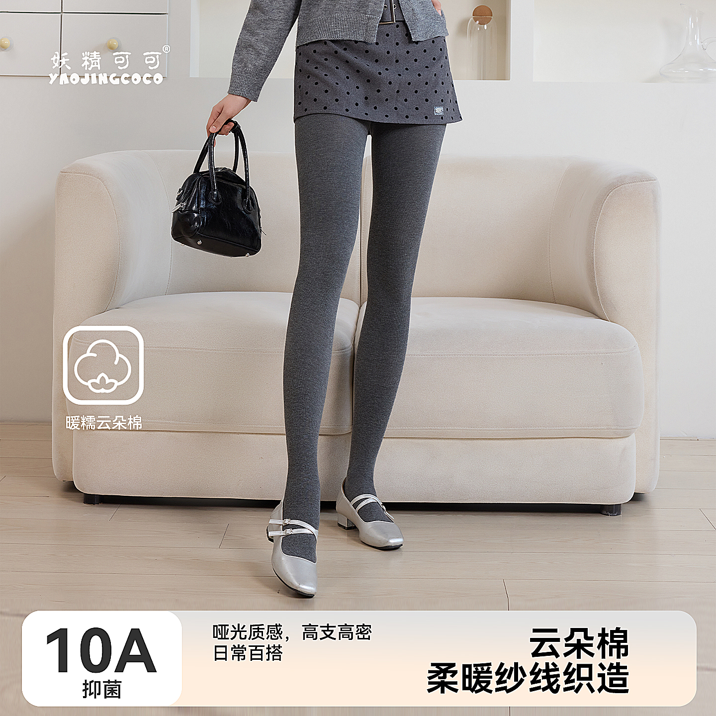 妖精可可山茶花灰色打底裤女外穿显瘦袜子加绒连裤袜竖条纹裤袜 - 妖精可可旗舰店