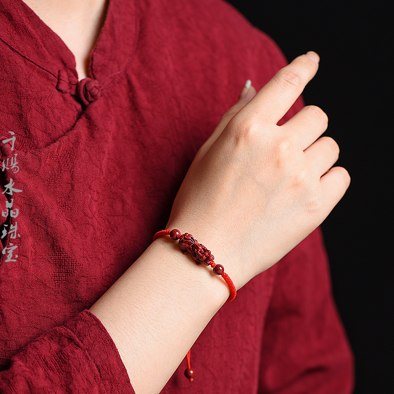保真正品朱砂貔貅金鱼手链女编织红绳情侣款手绳简约饰品招财转运 - 千赐水晶珠宝有限公司湘西原矿真朱砂企业店