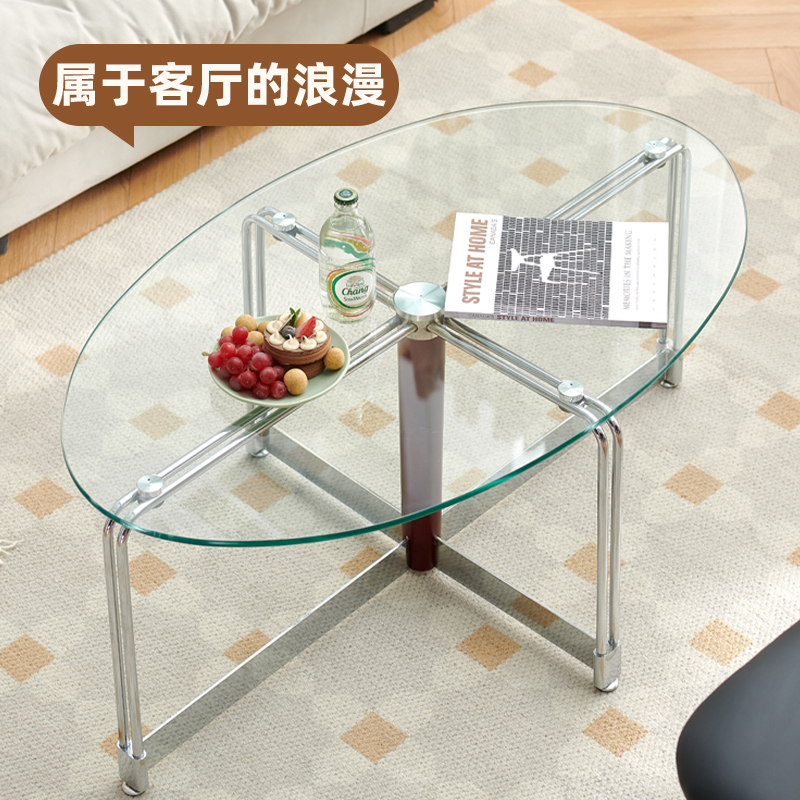 中古高端玻璃茶几客厅家用小户型设计师创意侘寂风椭圆形桌子矮桌