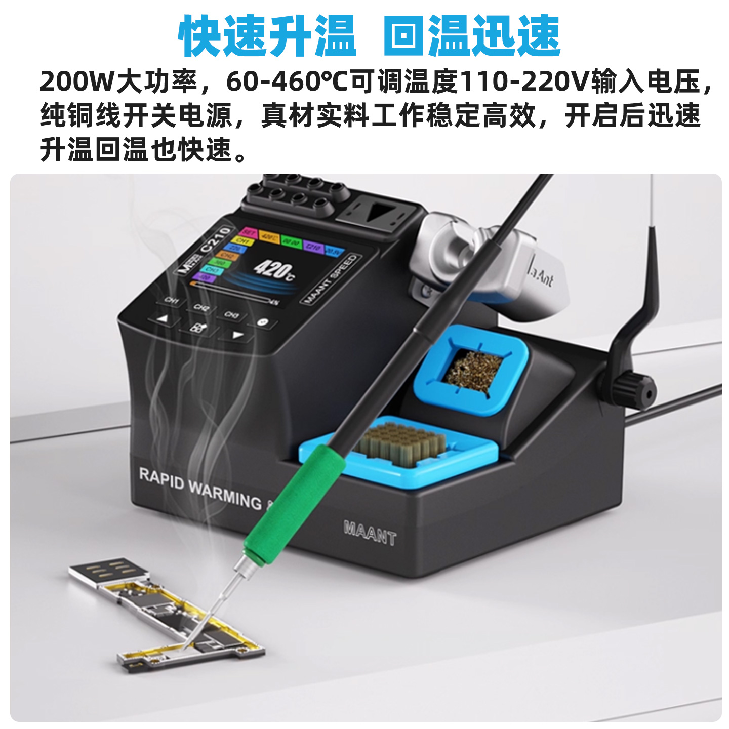 蚂蚁昕C210恒温焊台手机维修电烙铁245大功率智能拆焊台diy套件 - 惠民通维修工具20年老店