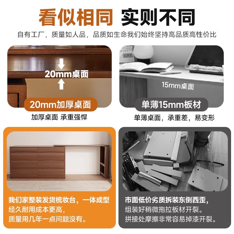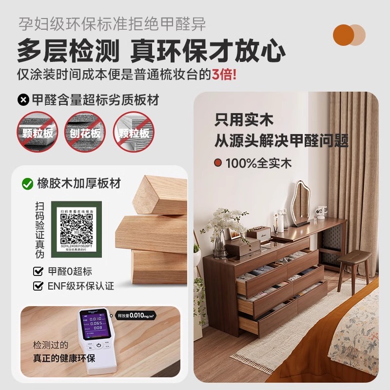 家逸梳妆台斗柜一体实木化妆桌卧室现代简约床尾柜转角书桌化妆台 - 家逸旗舰店