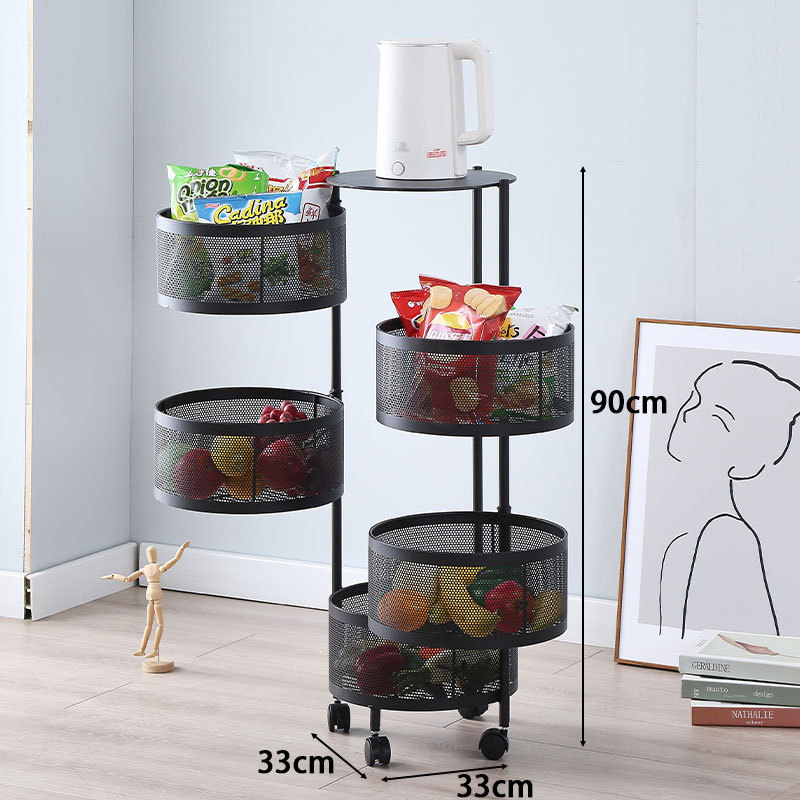 您的位置:他他商城  >   >  厨房旋转置物架家用碳钢多层菜篮透气落地可移动小推车零食架