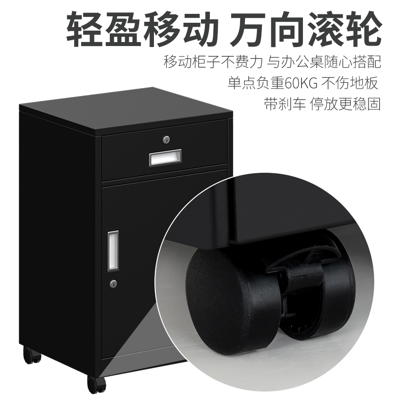 办公铁皮柜文件柜桌下抽屉柜移动矮柜储物柜带锁小柜子工具收纳柜