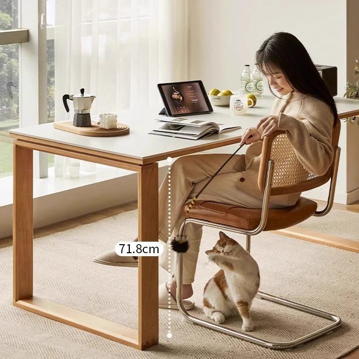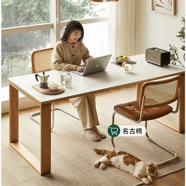 严选中古风莫比恩岩板实木餐桌轻法式奶油风饭桌设计师岛台用餐桌