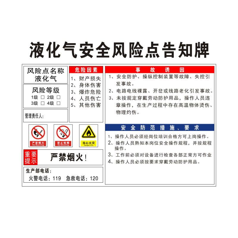 液化气安全风险点告知牌卡危险源预防措施消防设备通道标语标识牌标志标示指示警告提示贴纸警示牌定制FXD94