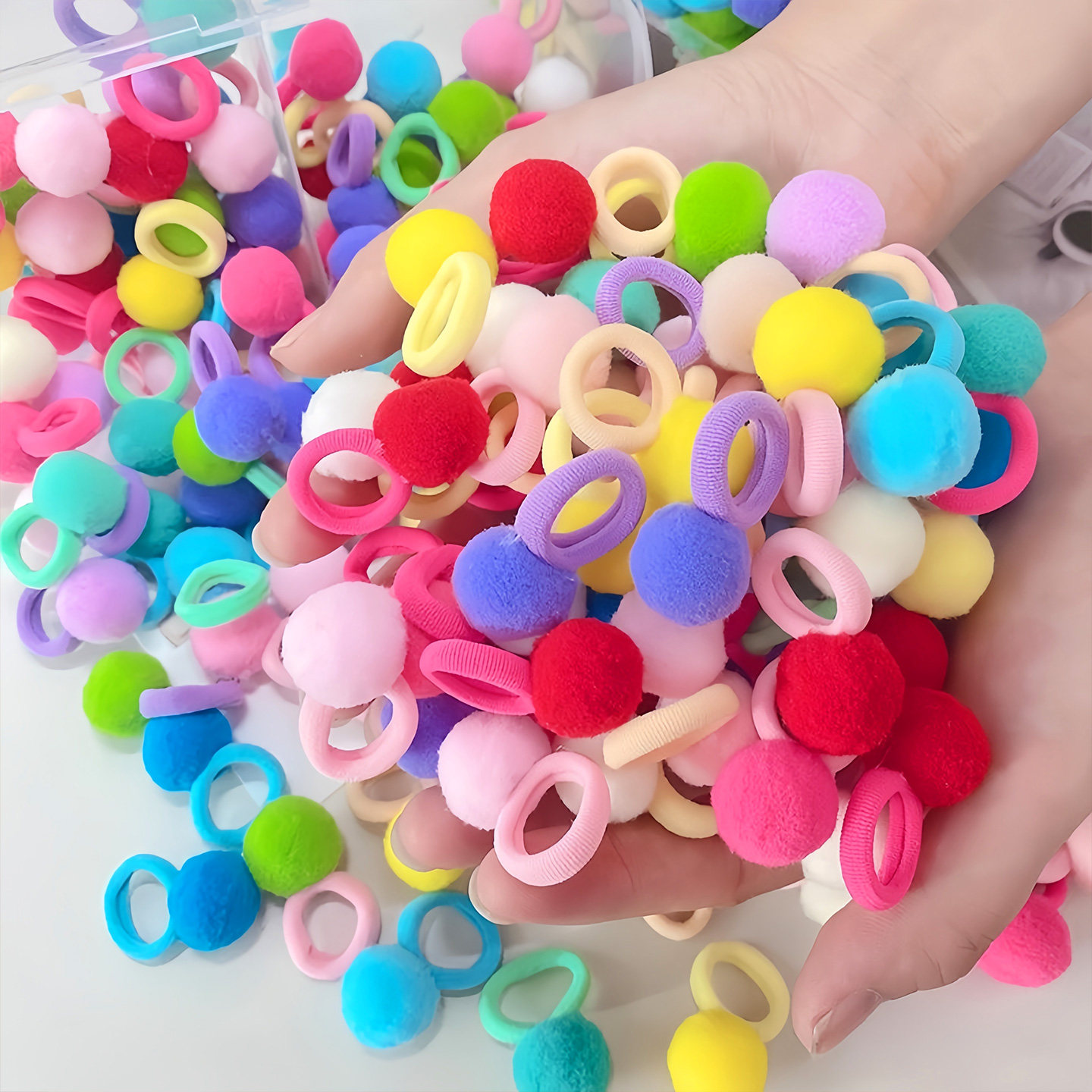 女孩彩色小毛球发绳宝宝橡皮筋幼儿园女童可爱发圈扎头发不伤发 - 家美百货超市