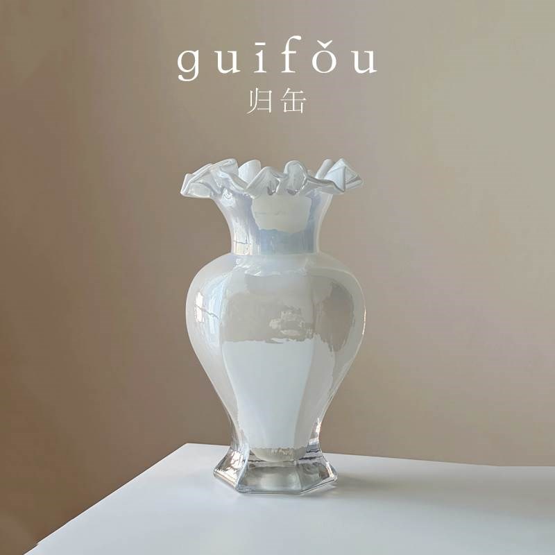 归缶珠光炫彩手工中古芬顿玻璃花瓶鱼尾花器轻奢家居摆件餐桌装饰 - 竺恺旗舢店企业店
