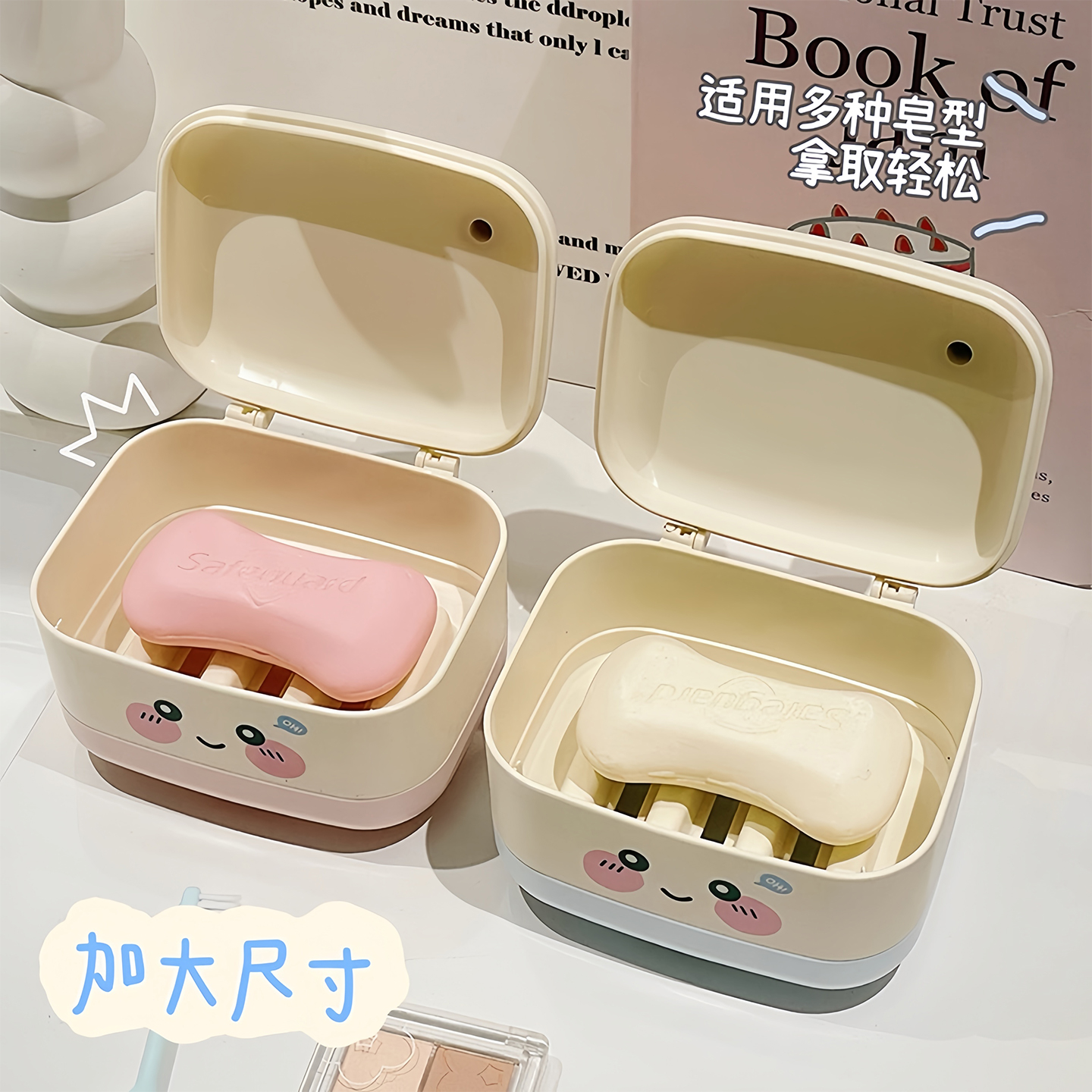 您的位置:他他商城  >   >  可爱肥皂盒家用卫生间双层沥水香皂盒便携学生宿舍带盖香皂收纳盒
