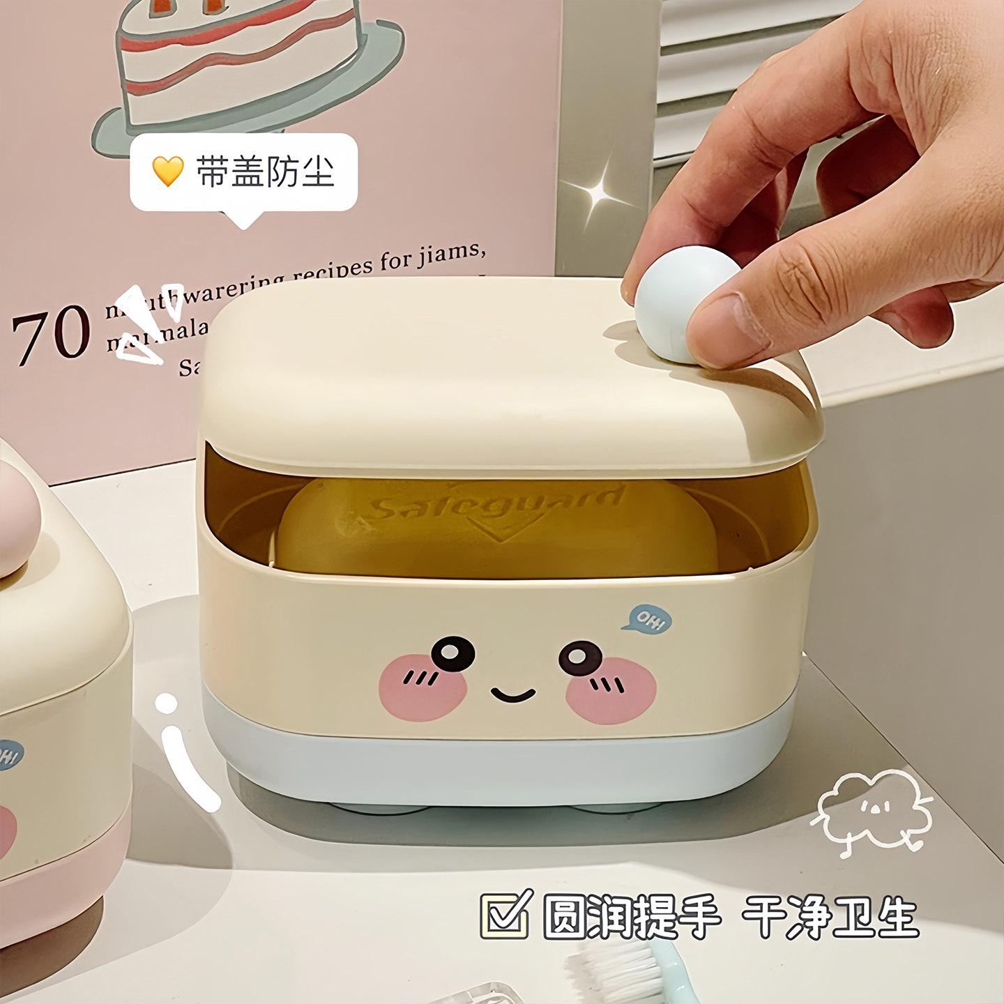 可爱肥皂盒家用卫生间双层沥水香皂盒便携学生宿舍带盖香皂收纳盒 - 集美日用家居商城