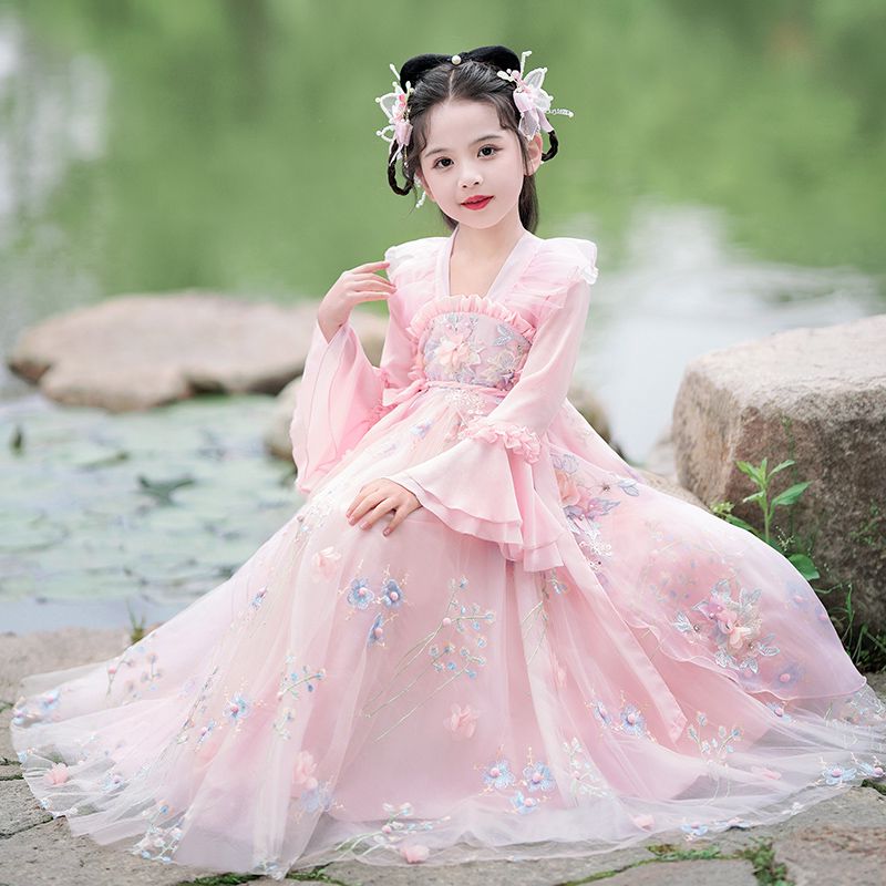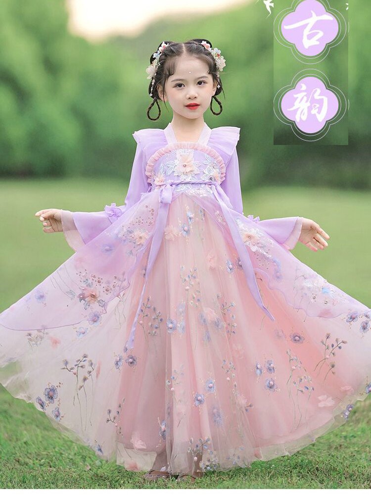 您的位置:他他商城  >   >  汉服女童春秋2024新款古风儿童唐装中国风超仙连衣裙花仙子演出服